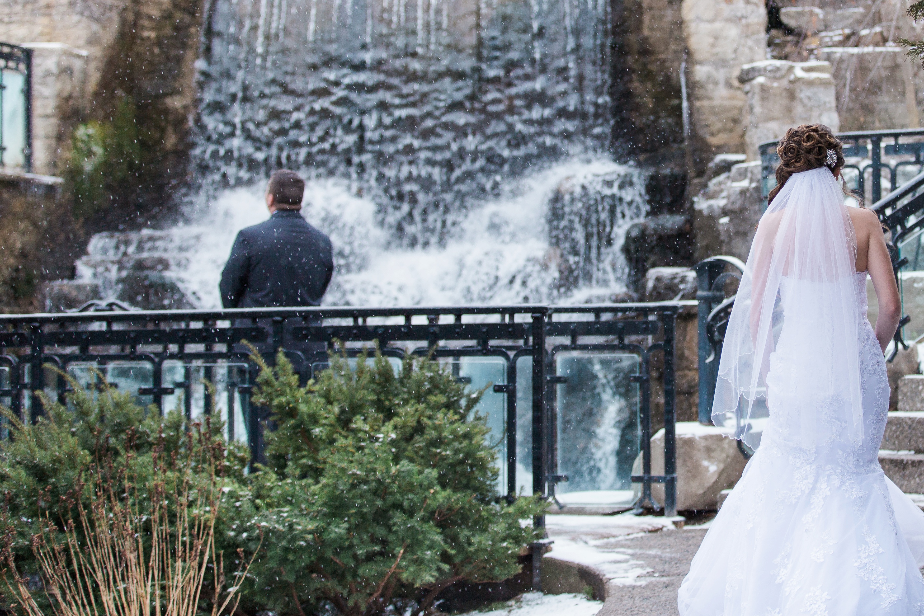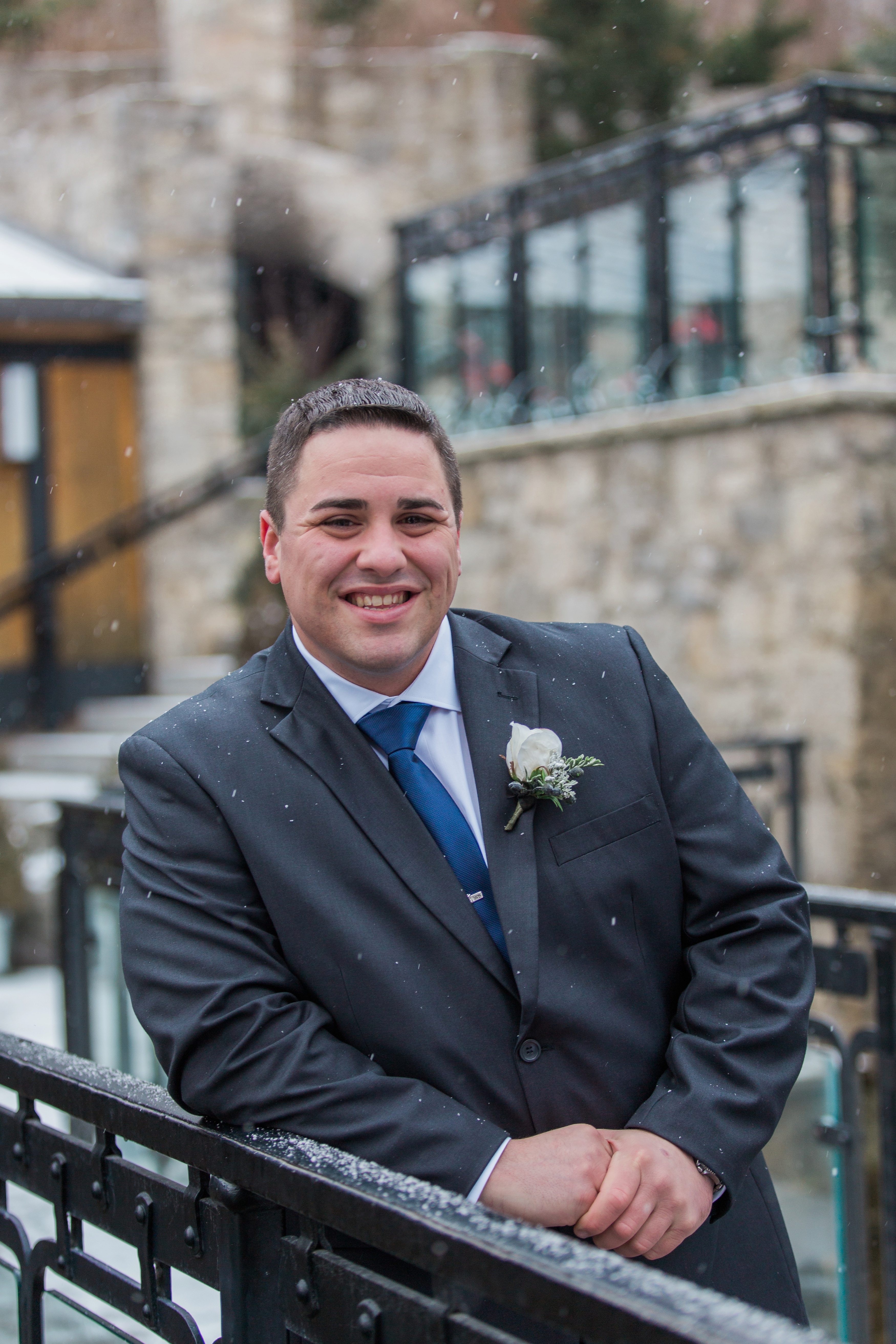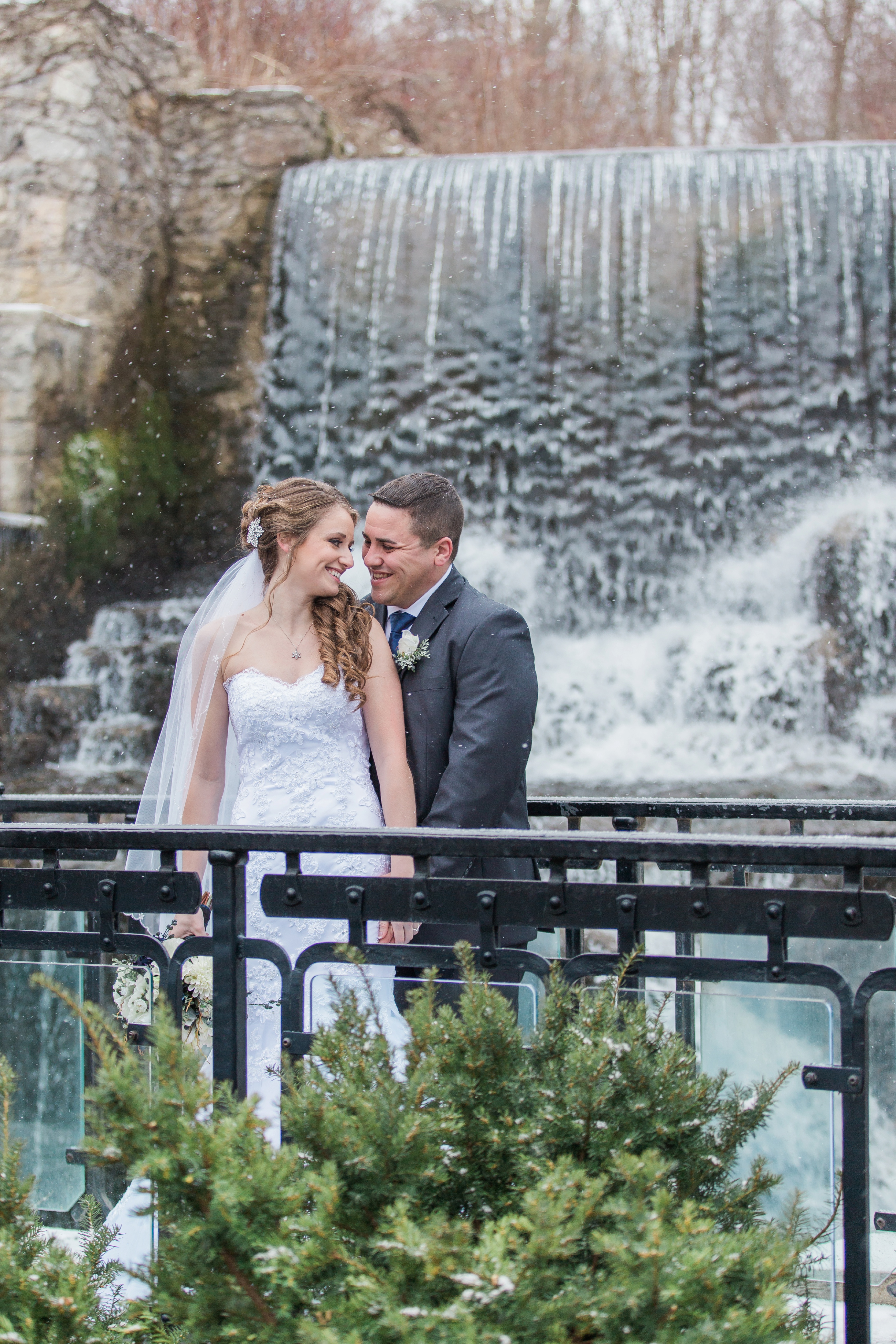 Where do I even begin to describe this beautiful Ancaster Mill Wedding? Nicole & Pete had a very beautiful winter wedding at one of the Pearle Wedding and Events venues this past Saturday. It was a beautiful winter day and the snow was falling so magically. To my surprise upon arrival, there were many magical Disney touches spread throughout the day. From decor to their vows, it was Disney inspired. Obviously, I was super excited for the unexpected surprise. It is without a doubt that Nicole did not overlook a single detail. I think the thing I loved most was her blue sparkle mittens that her grandmother had stitched snowflakes onto to go with her winter wedding theme. I can say without a doubt, that Pete’s reaction to seeing Nicole during their first look is hands down the best expression I have ever seen. For a moment there it was a little touch and go if he would be my first groom to faint, but he, as their hankies said, Kept his shit together. For wedding party photos we spent some time on the grounds at the Ancaster Mill but also took a small drive down the road to Sherman Falls. This beautiful waterfall added a unique backdrop for their wedding day photos.