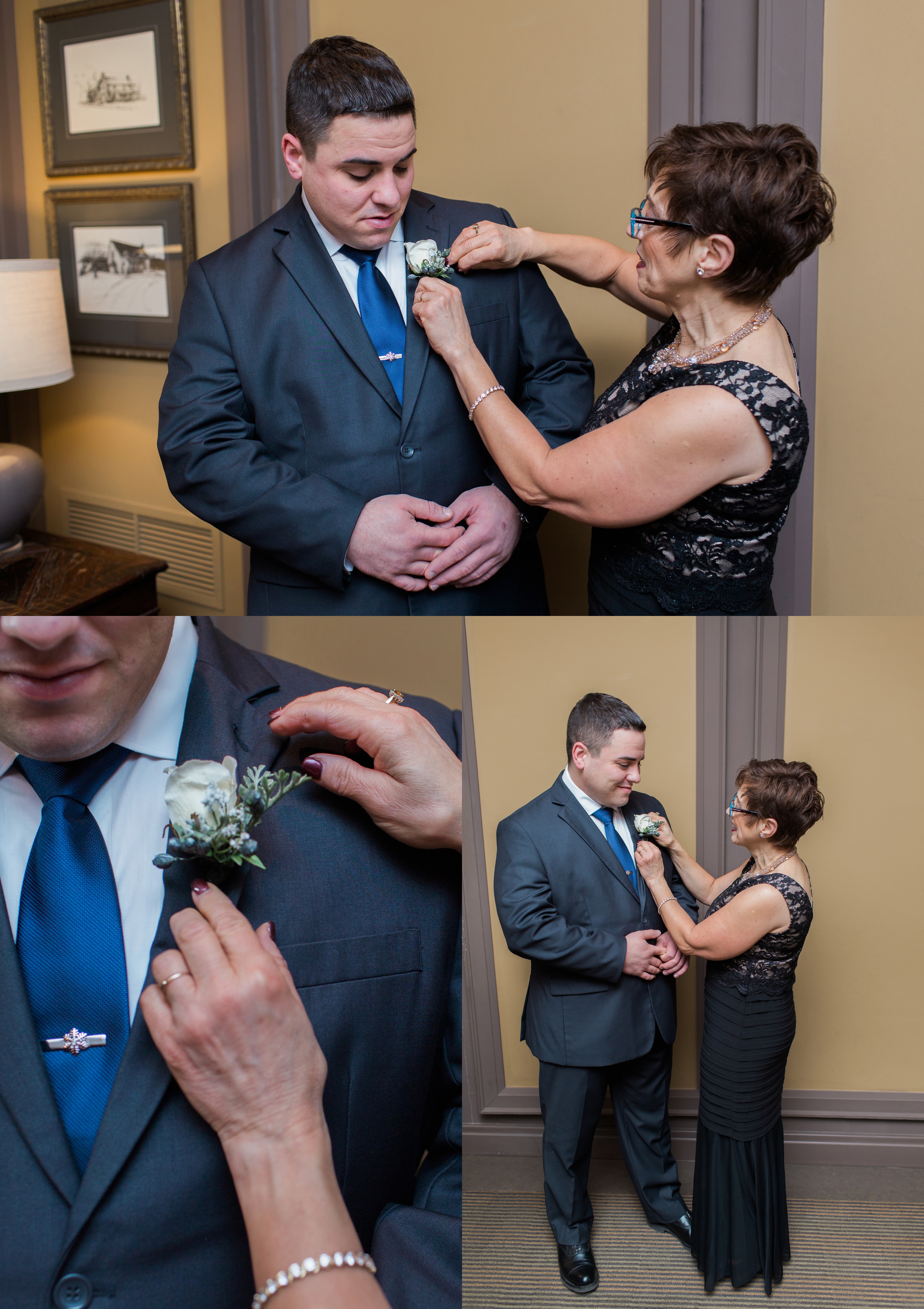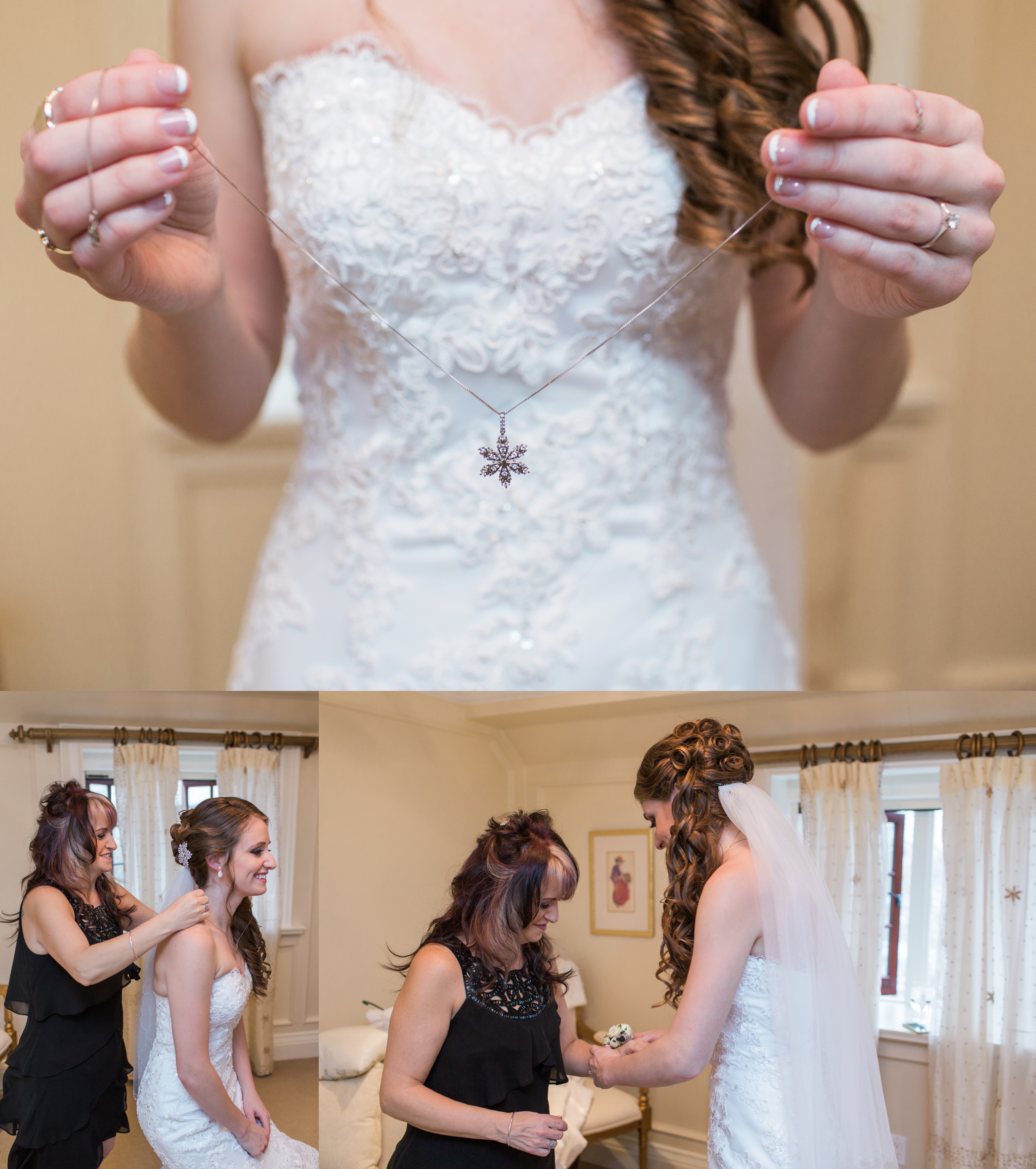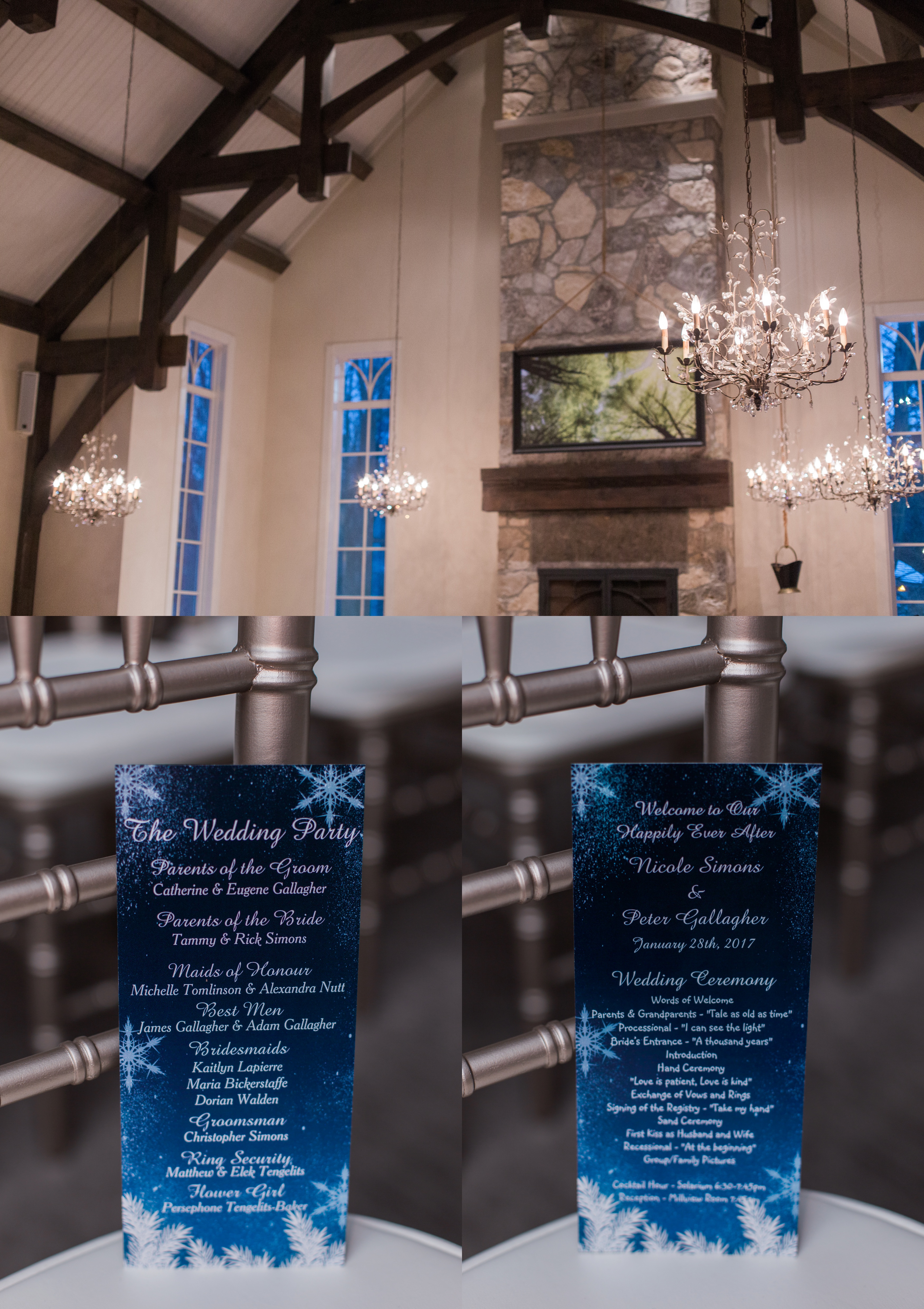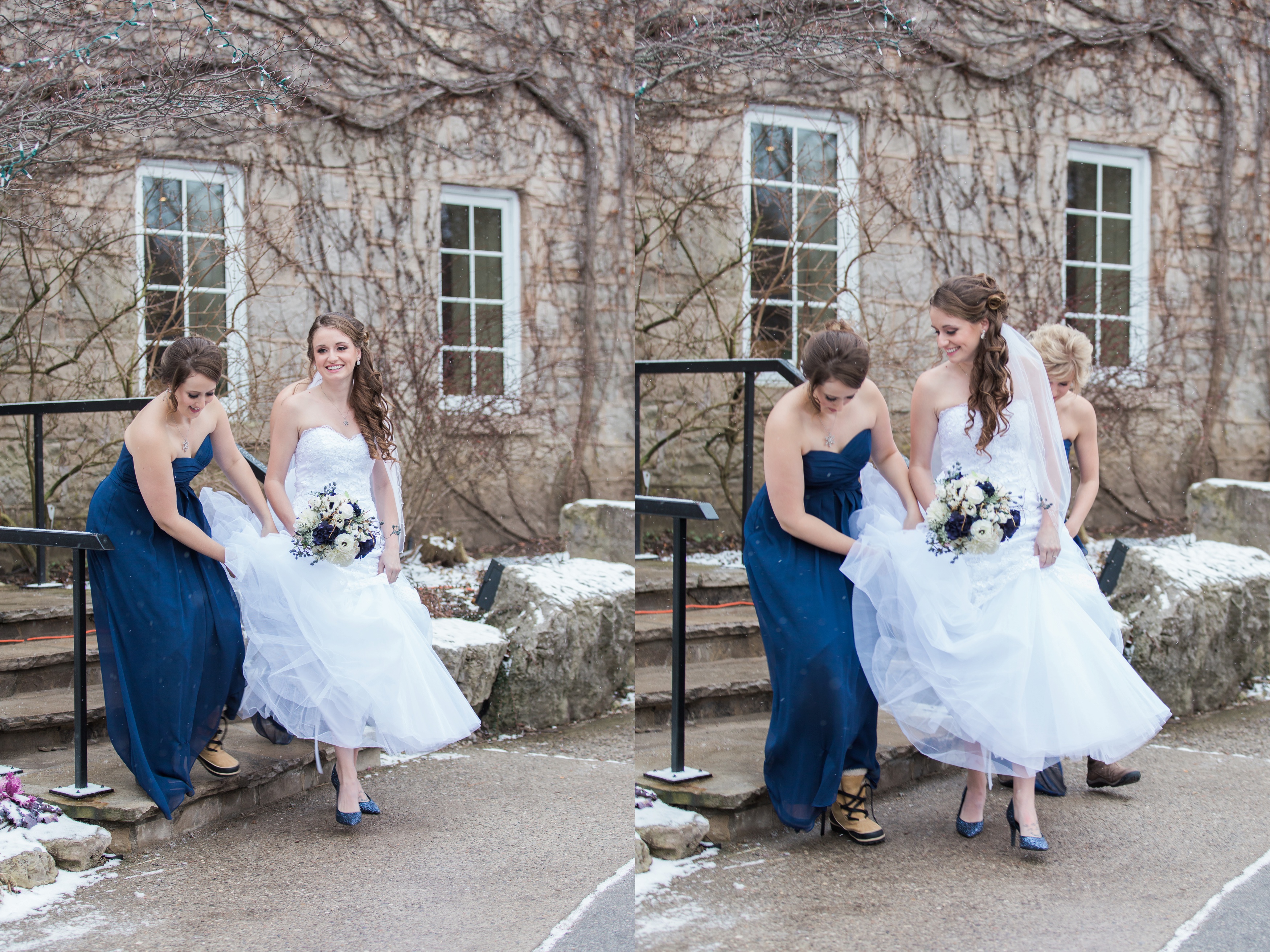Where do I even begin to describe this beautiful Ancaster Mill Wedding? Nicole & Pete had a very beautiful winter wedding at one of the Pearle Wedding and Events venues this past Saturday. It was a beautiful winter day and the snow was falling so magically. To my surprise upon arrival, there were many magical Disney touches spread throughout the day. From decor to their vows, it was Disney inspired. Obviously, I was super excited for the unexpected surprise. It is without a doubt that Nicole did not overlook a single detail. I think the thing I loved most was her blue sparkle mittens that her grandmother had stitched snowflakes onto to go with her winter wedding theme. I can say without a doubt, that Pete’s reaction to seeing Nicole during their first look is hands down the best expression I have ever seen. For a moment there it was a little touch and go if he would be my first groom to faint, but he, as their hankies said, Kept his shit together. For wedding party photos we spent some time on the grounds at the Ancaster Mill but also took a small drive down the road to Sherman Falls. This beautiful waterfall added a unique backdrop for their wedding day photos.