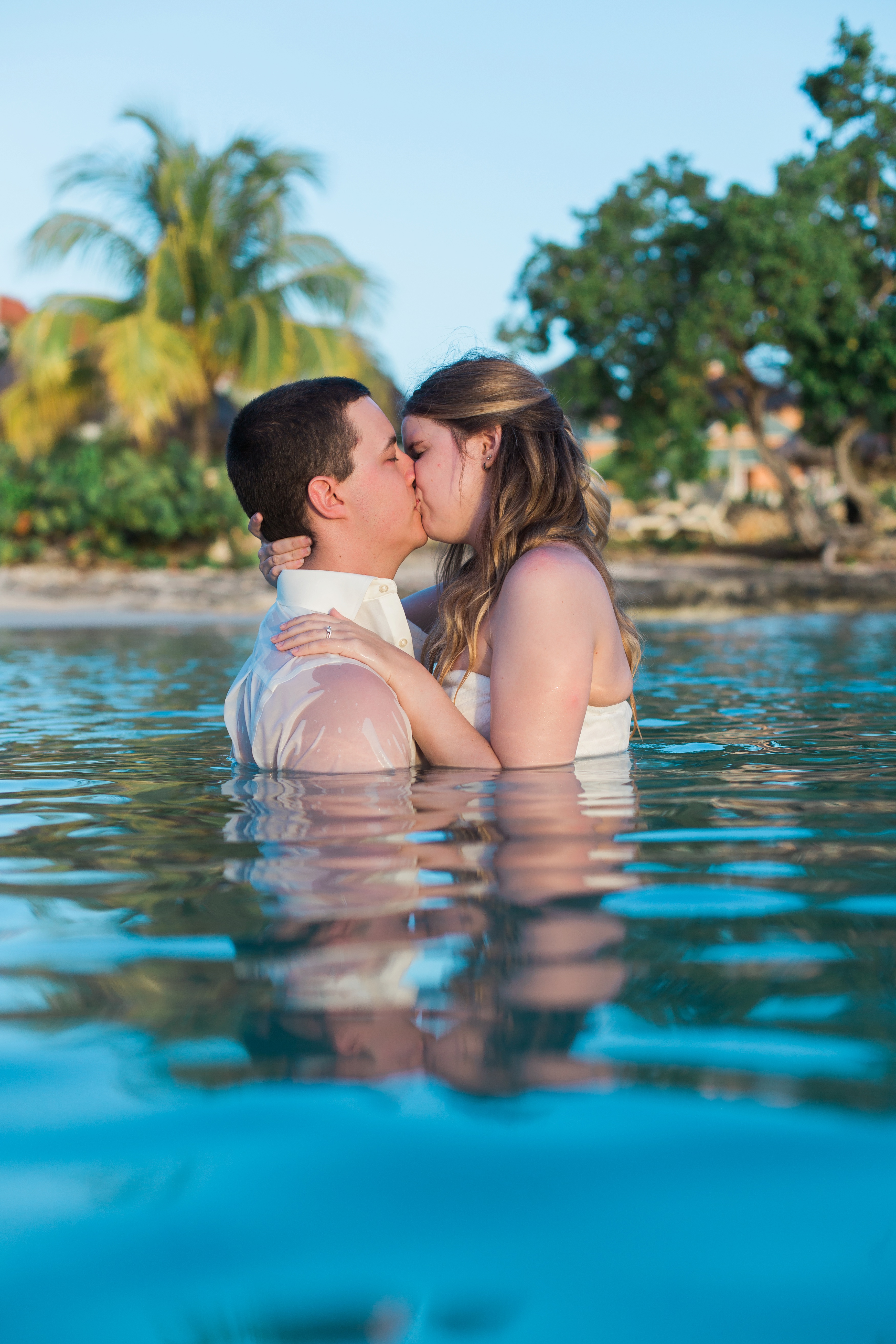 We spent the evening roaming the grounds of Bahia Principe Jamaica resort while having lots of fun. This adorable couple laughed their way through the session. It was clear that they were having a great time with the session. We took advantage of the calm ocean waters and took a dunk. I had so much fun with them. Stay tuned for their wedding blog post coming shortly.
