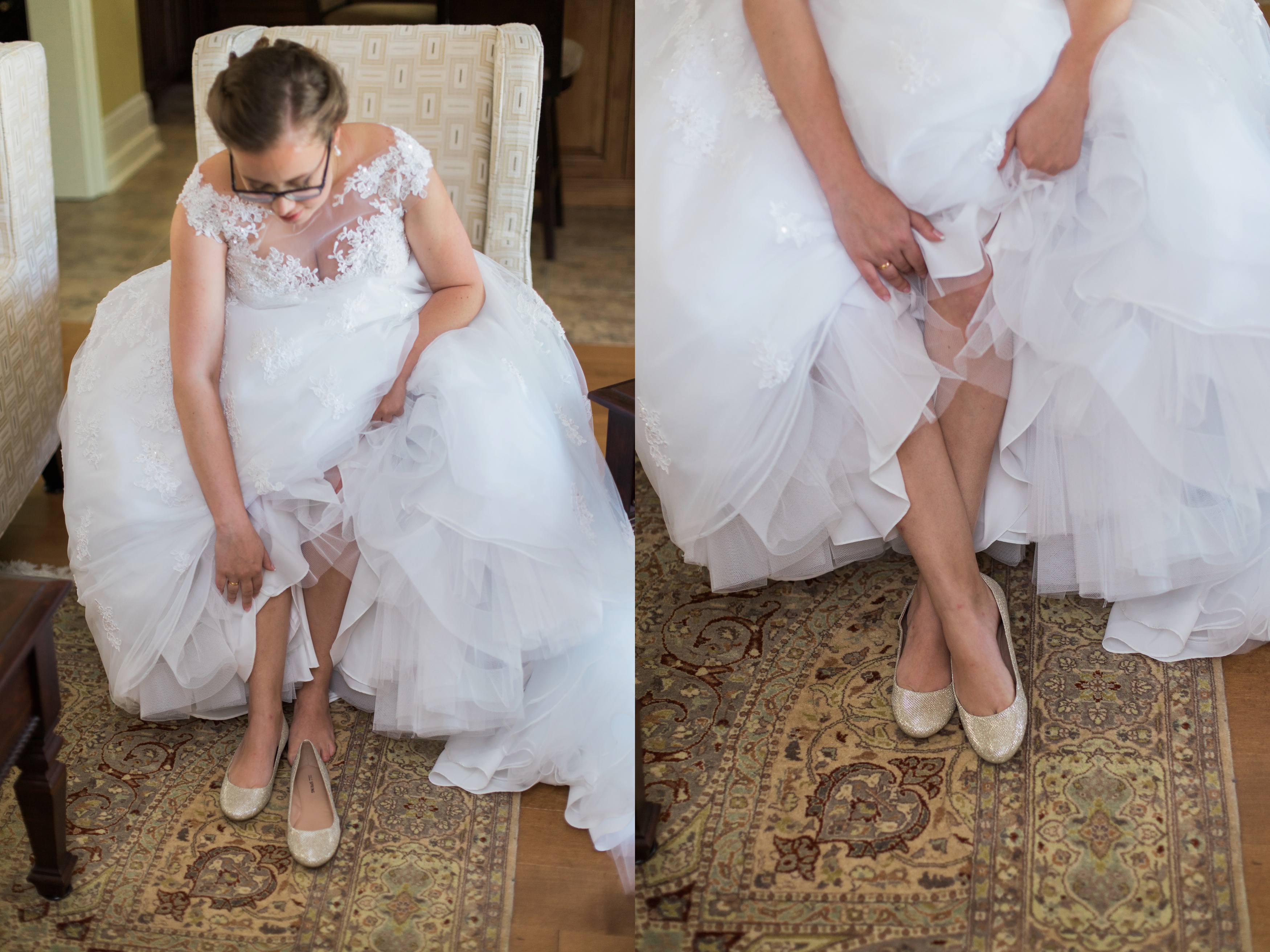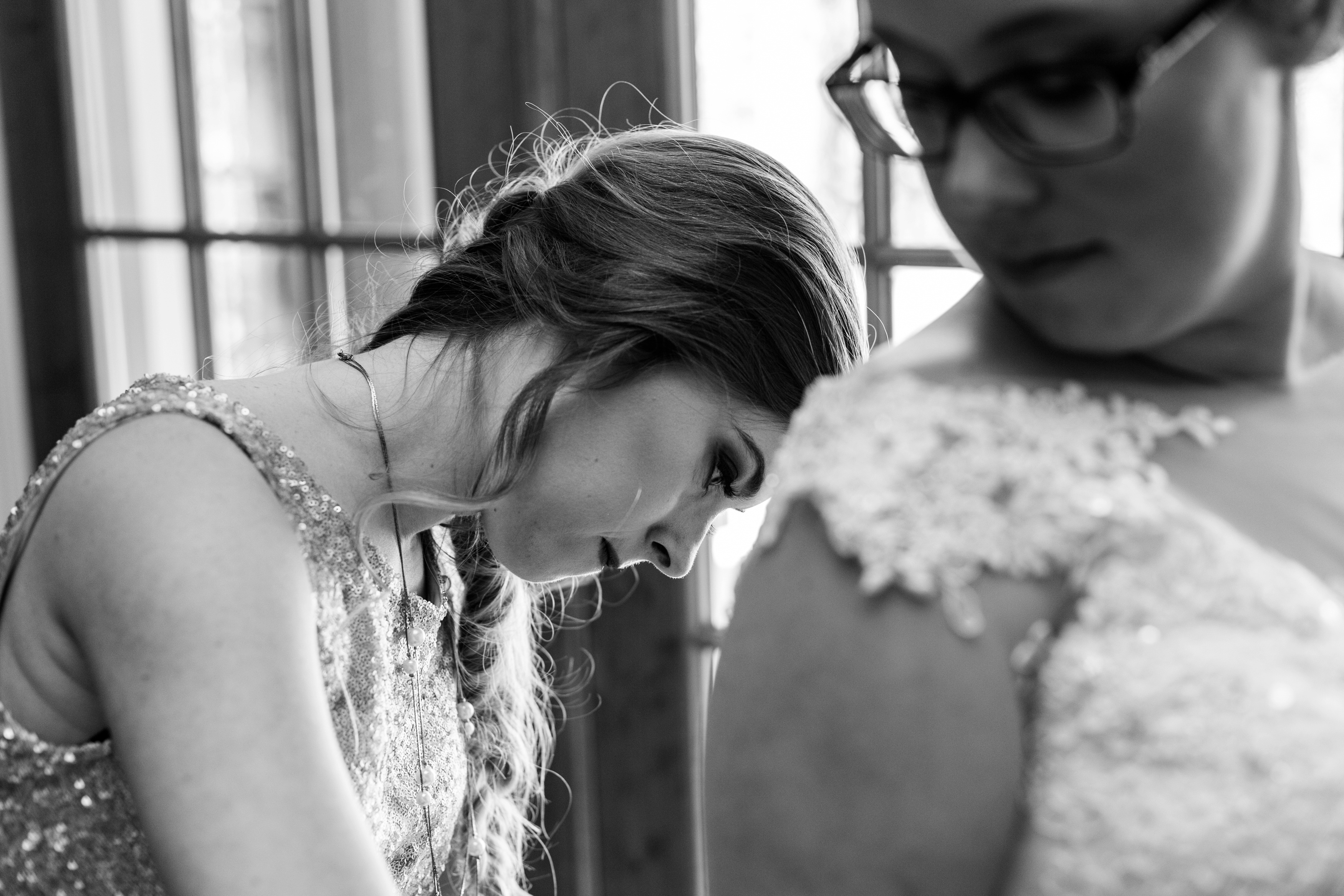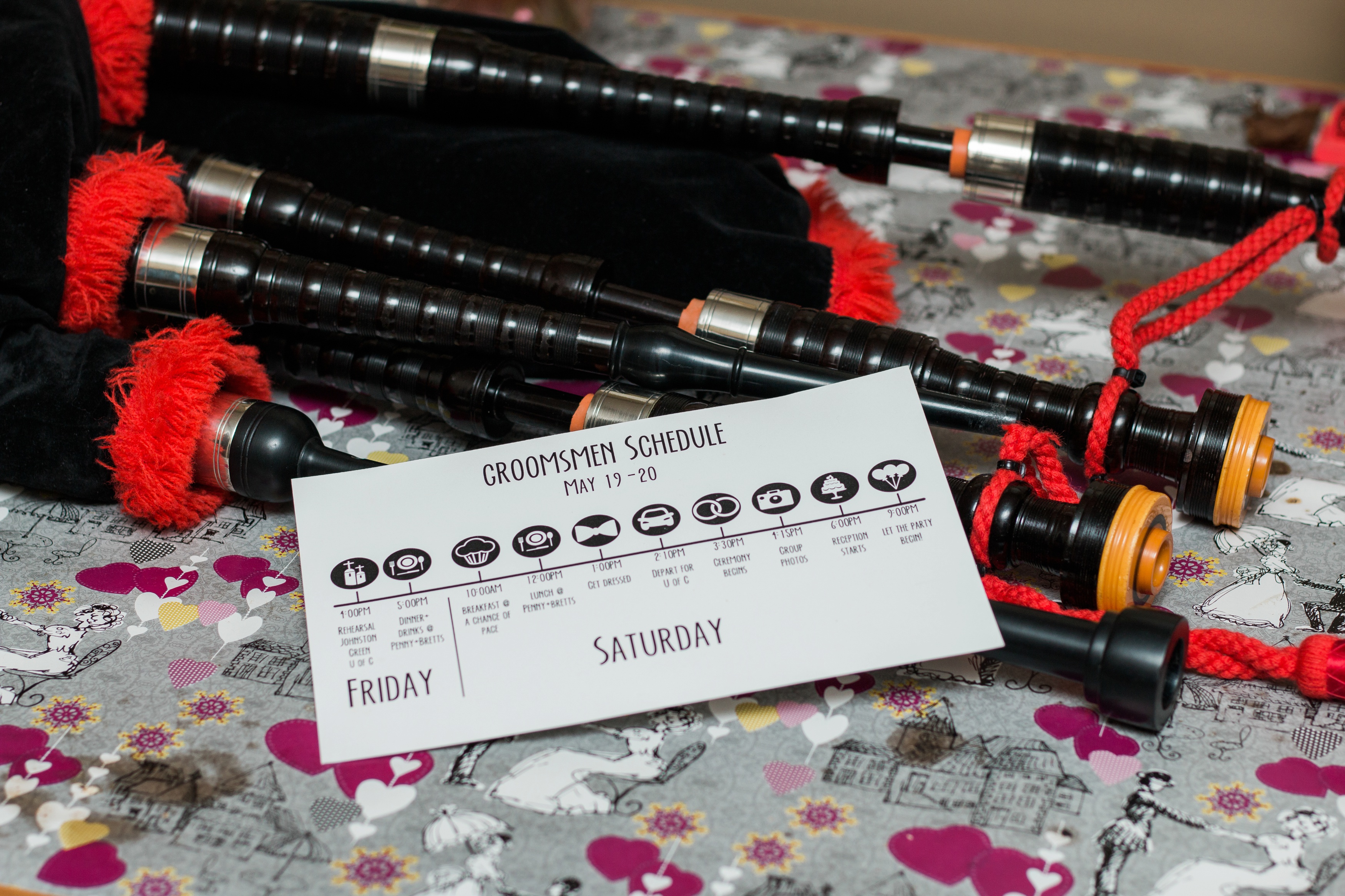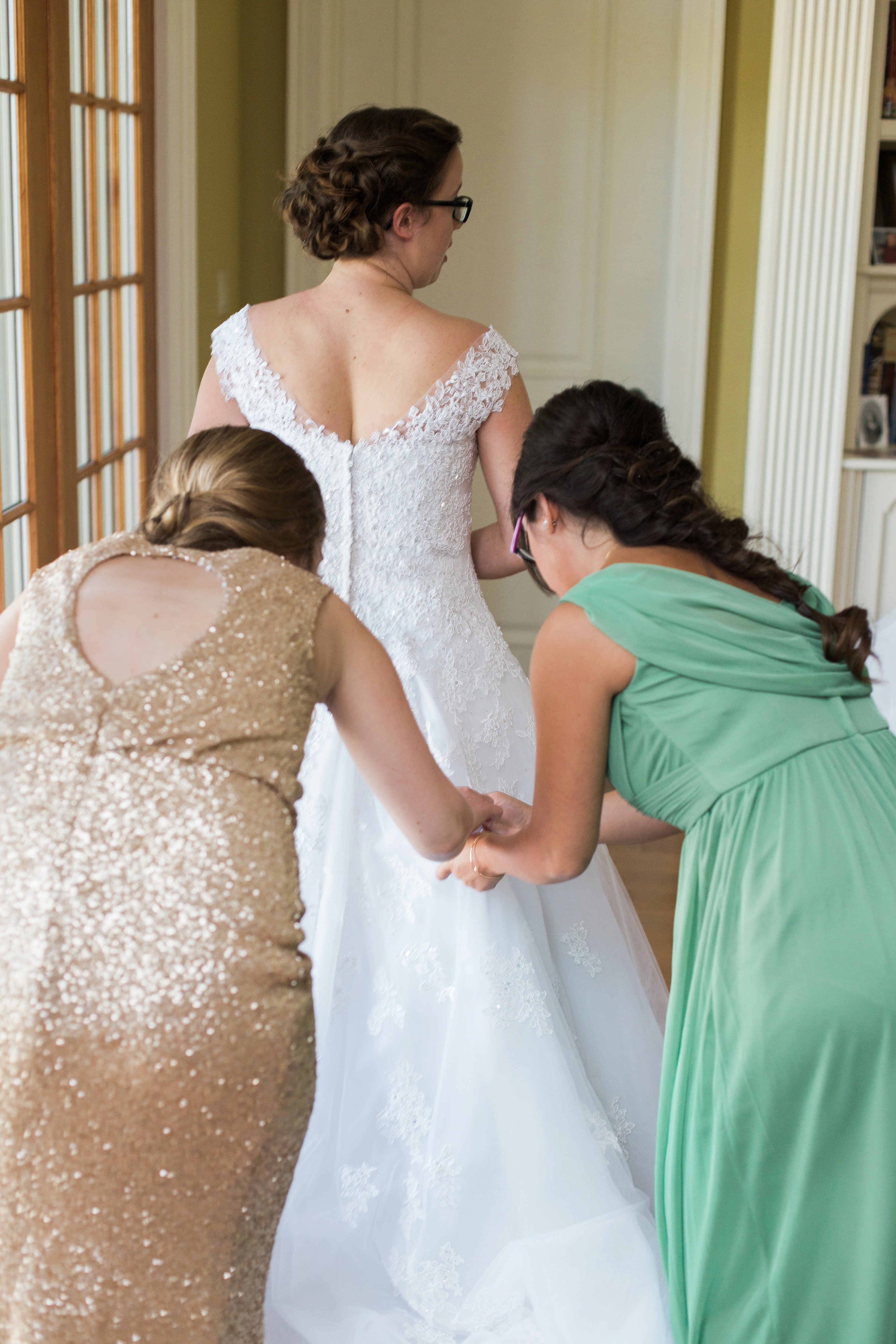 This was my first time photographing a wedding at the University of Guelph in Guelph, Ontario. However, it was the most perfect backdrop for Sam & Alex’s Scottish Wedding. Where do I even begin with this wedding. There are so many wonderful moments and memories that I can share with you about my journey with this couple but I think we will just start from the wedding day. My day began with Sam and the ladies at her Uncle Gary’s home in Guelph. Upon arrival, the ladies were all finished getting dolled up and Sam was a glowing bride to be. Like most weddings, I start with bridal details. This included any jewellery, florals, stationary that the bride may be wearing or using throughout the day. I always get a photo of the bridal gown on its own also. I was so in love with Sam’s gown from the minute she brought it out. The beading, the lace and the straps! I love bridal gowns with straps. I think they are feminine, elegant and timeless. Once we captured all the details it was time for the ladies to get dressed. Sam did an excellent job selecting the attire for her bridal party. Her sister, who was also the maid of honour, wore a beautiful gold sequin gown to offset the bridesmaids green gowns. Alex’s sister made Sam a really pretty lace garter. This was a very sweet touch on her wedding day. With everyone dressed in their gowns and bags all packed up for the limo, courtesy of Brentwood Livery, we made our way to the University of Guelph for the ceremony.
