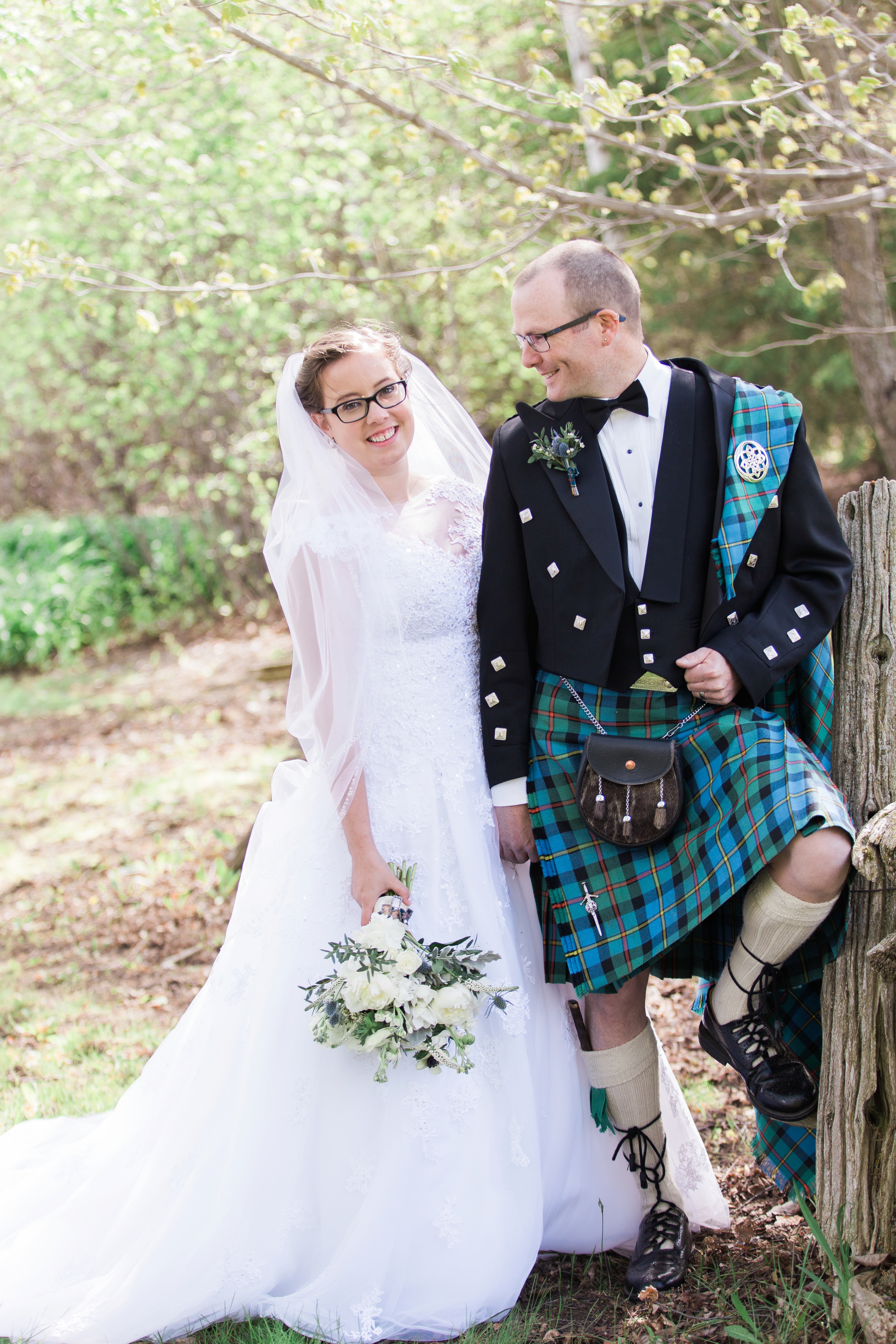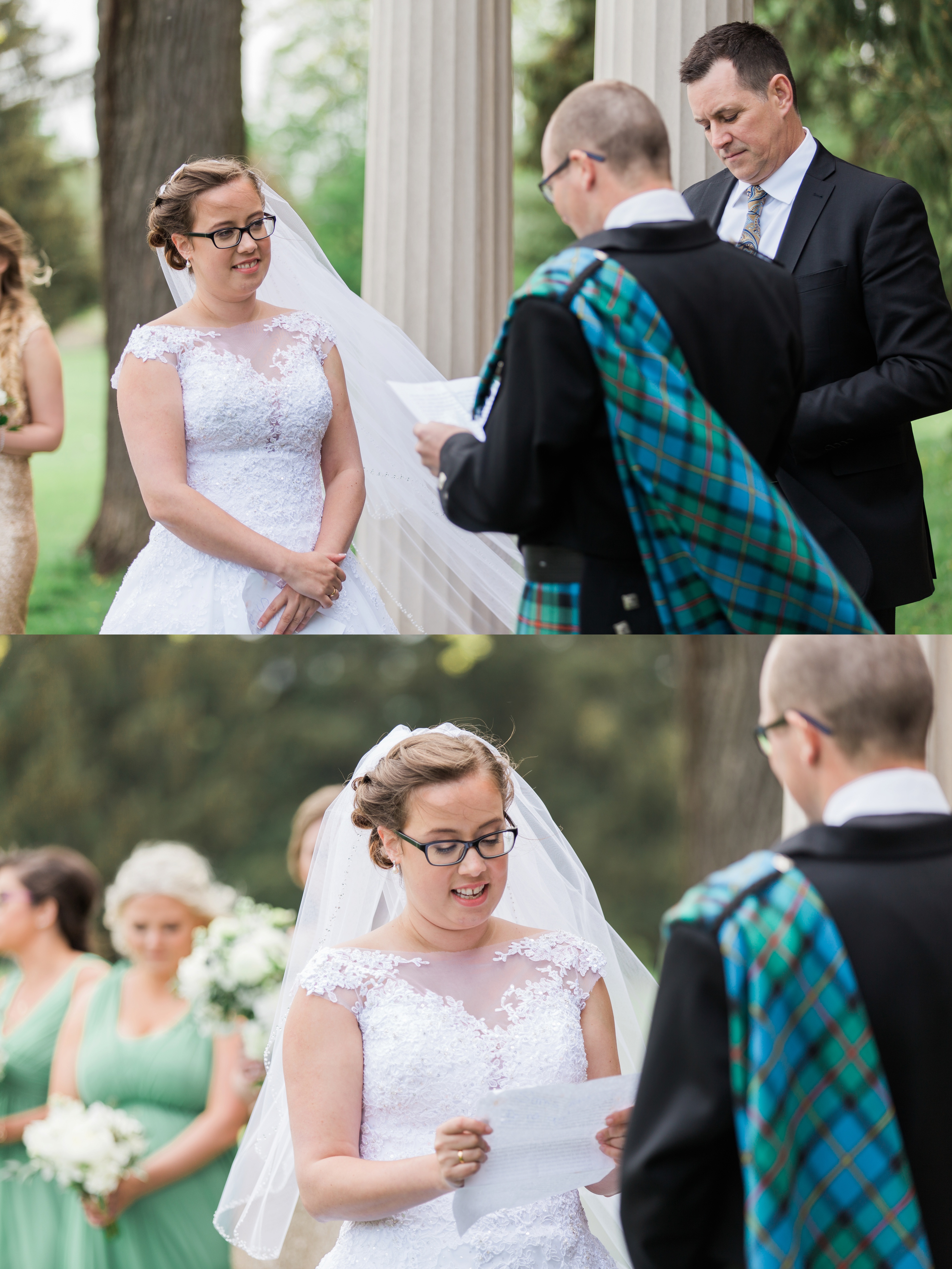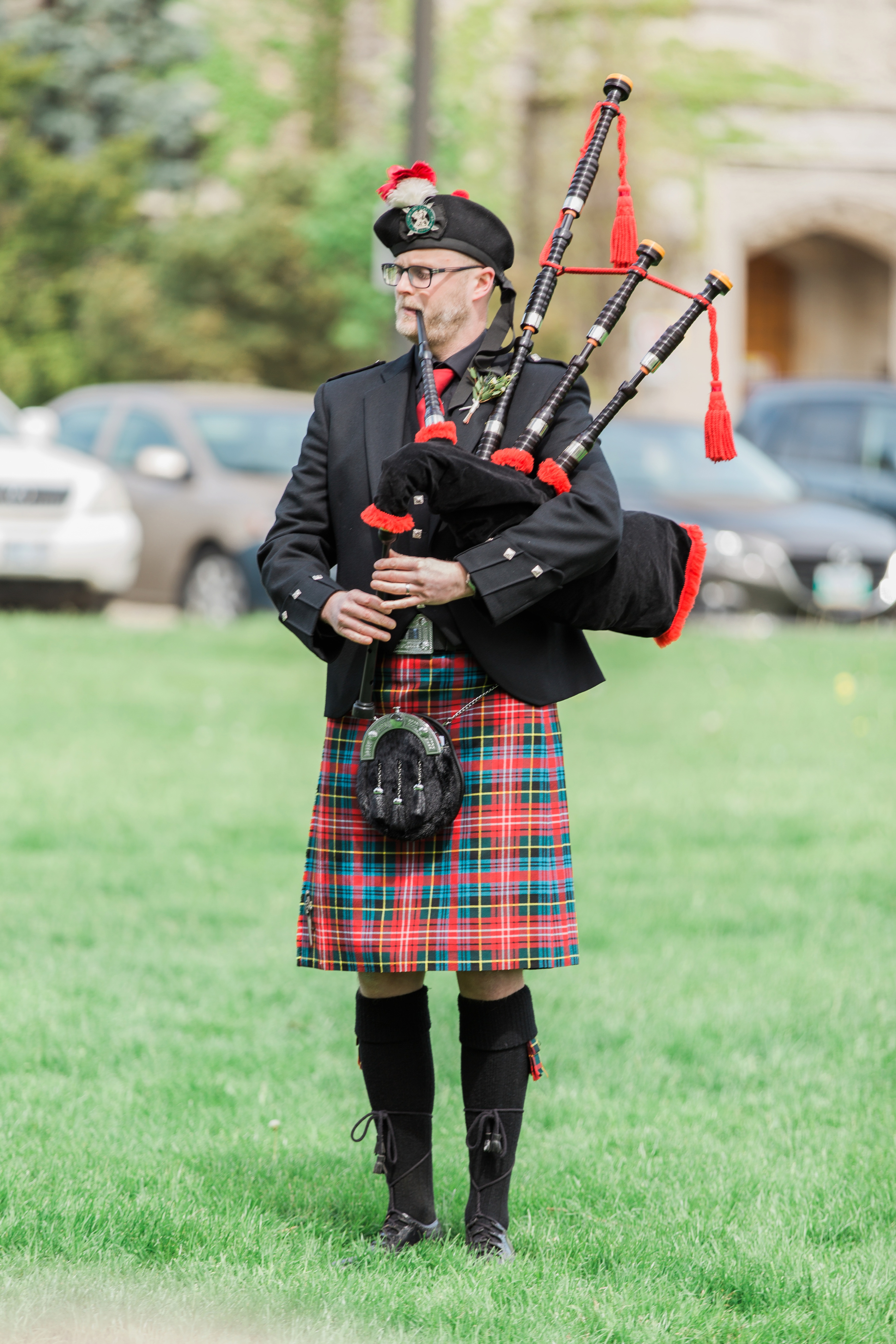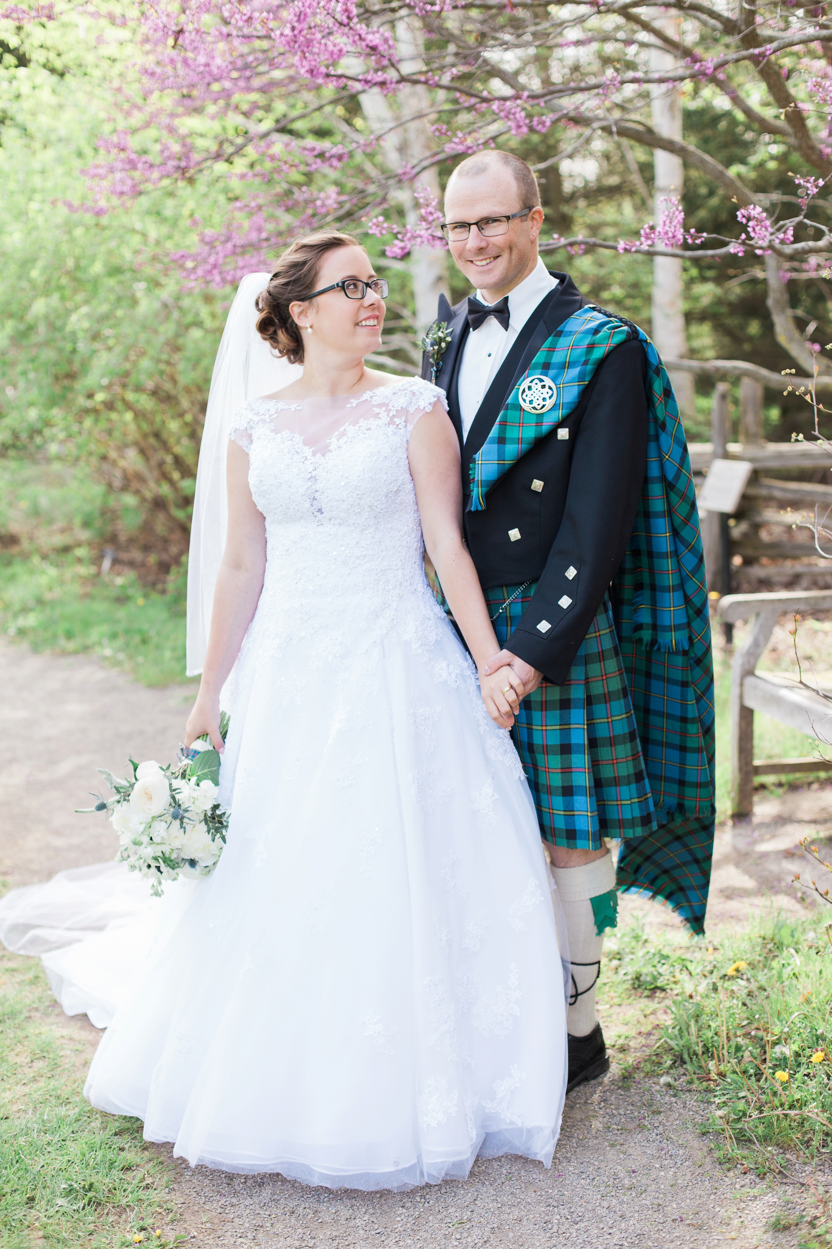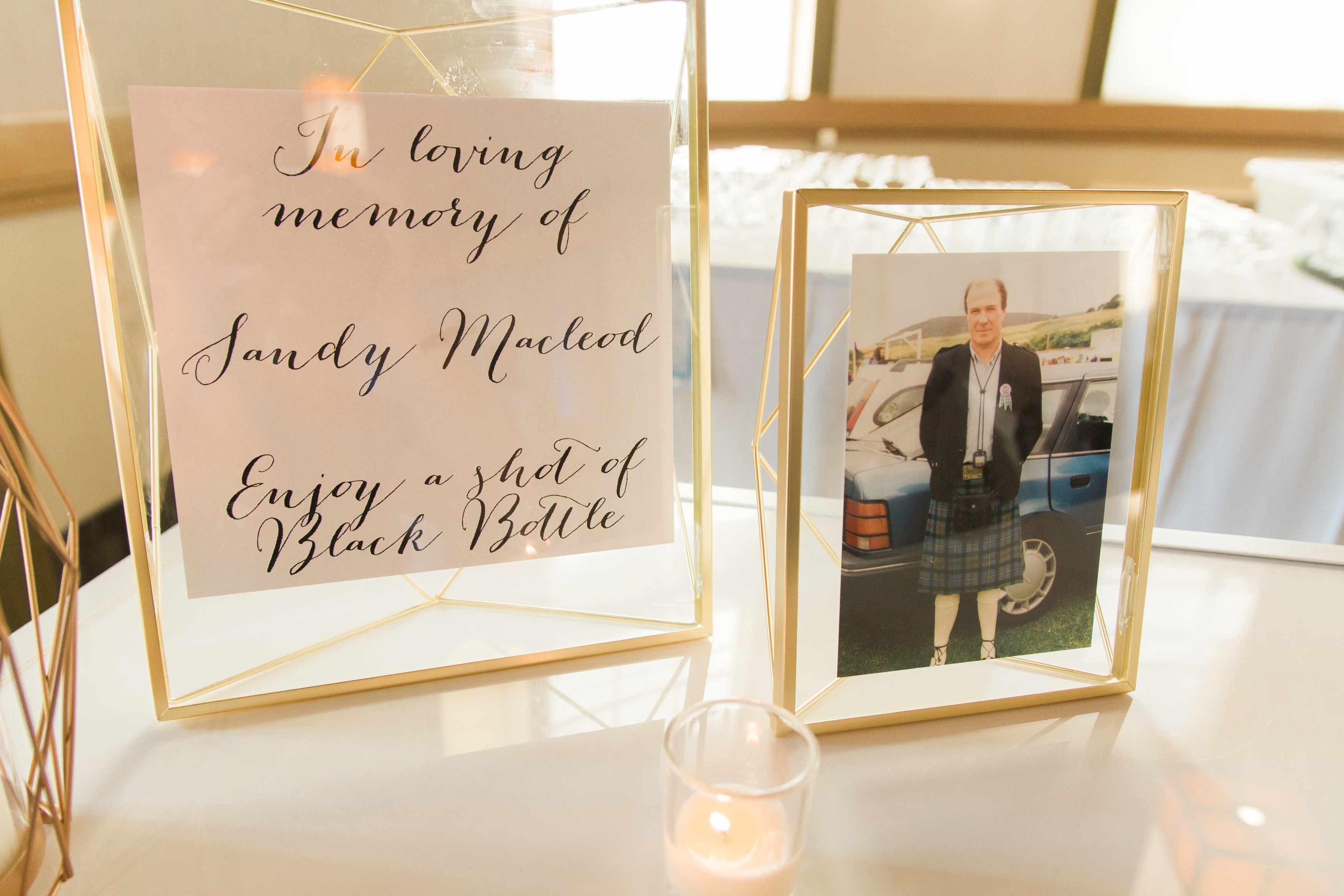 Guests from across the globe made there way to Guelph to celebrate with Sam and Alex. The sun was shining, guests were seated and Alex and the groomsman were dressed in their kilts and ready to begin. There ceremony was short and sweet and there was no shortage of tears or laughs. I really love when couples choose to write their own vows. It is something I wish that I would have done for my own wedding. I think my favourite moment of the ceremony was near the end right after they signed their marriage license. While Sam and Alex stood off to the side, Sam showed Alex her bouquet and the photos that were attached. Included in the bunch of images was a photo of Alex’s Dad. Sadly, his Dad had passed away before he could see his son get married. It was at this point that Alex broke down in happy tears. What a great surprise and sentiment that Sam had done for him. I should also mention, I may have shed a few tears myself. It was a very touching moment to see. I am not sure how many people witnessed this moment but I was sure glad I was able to capture it.