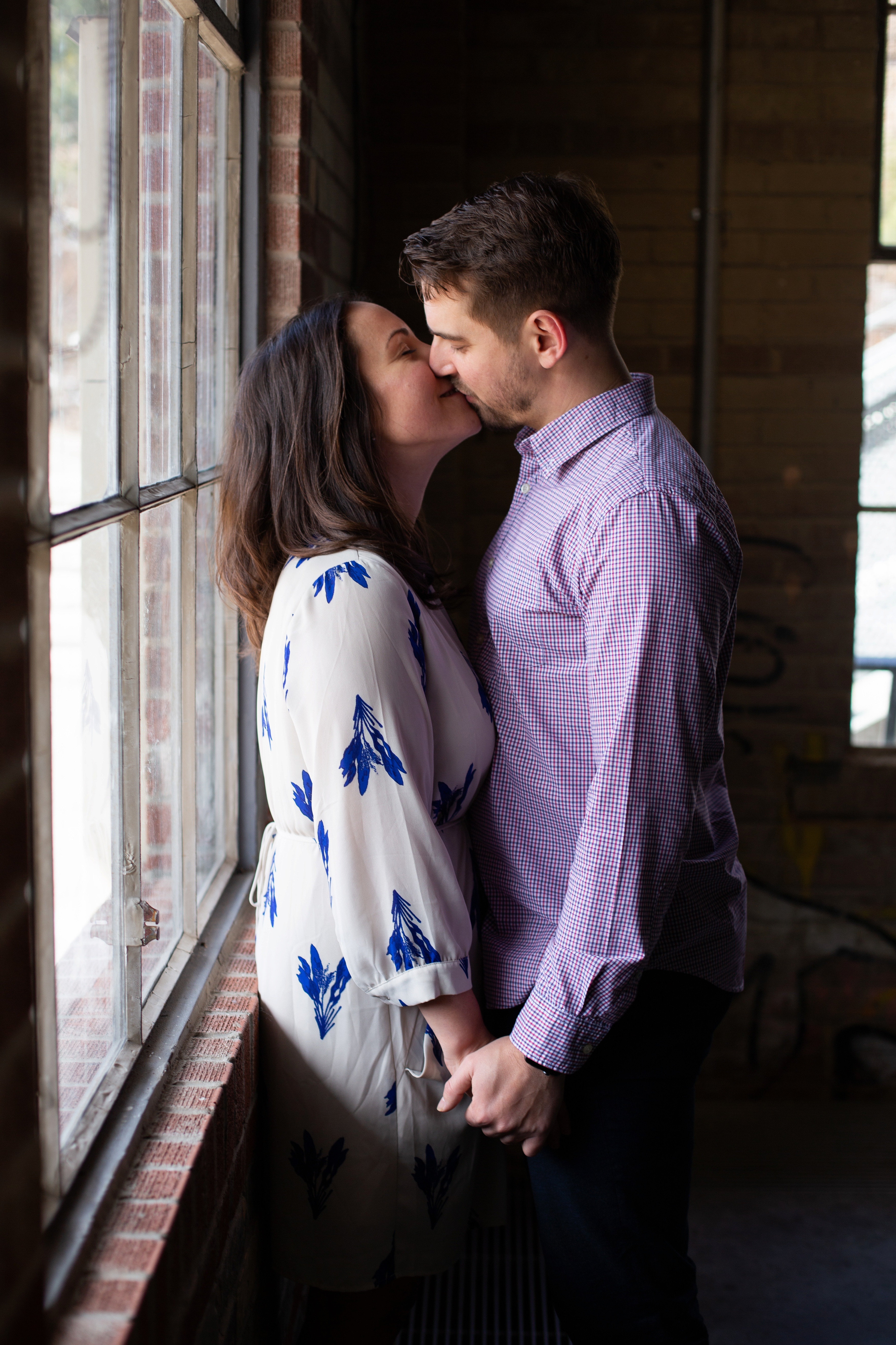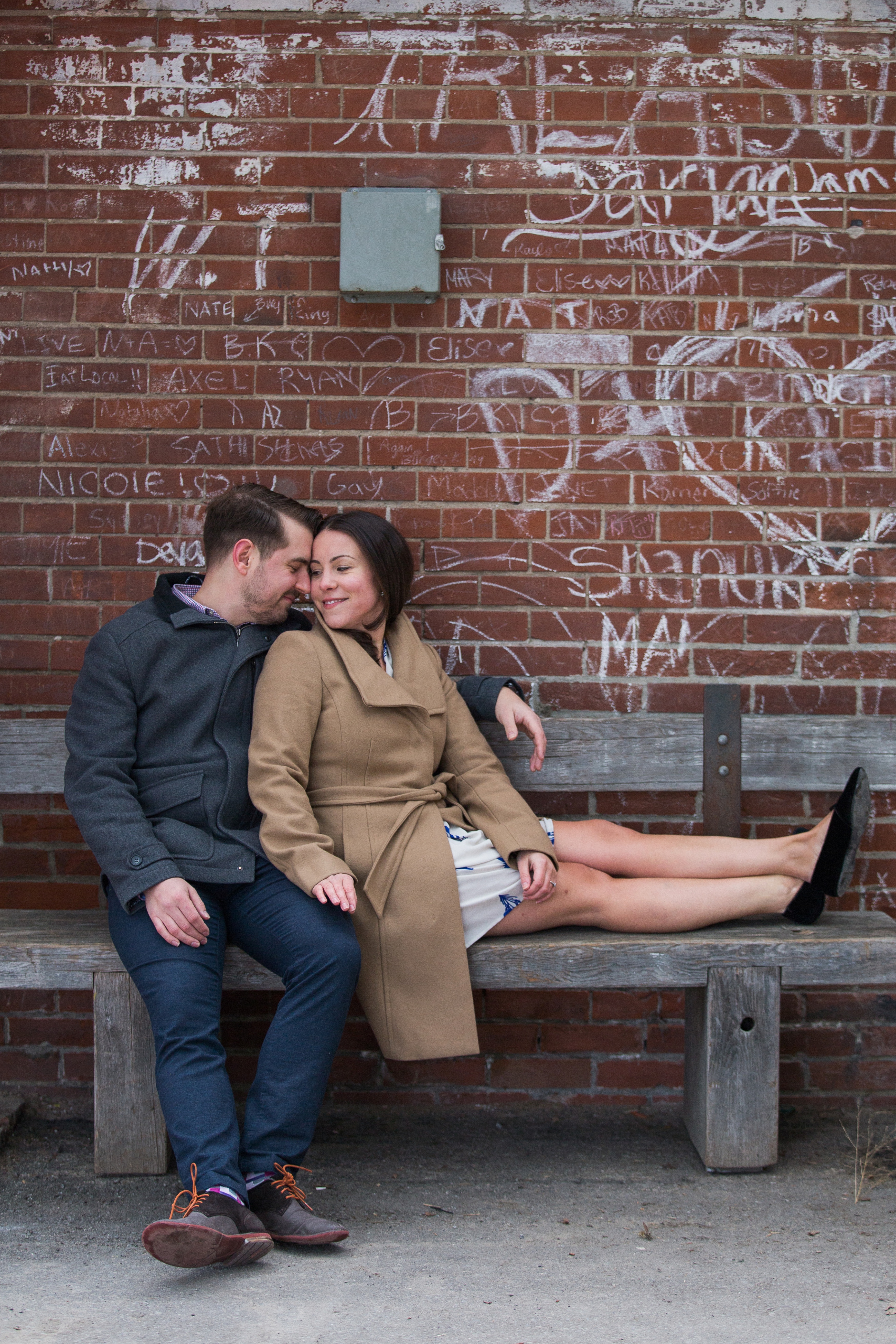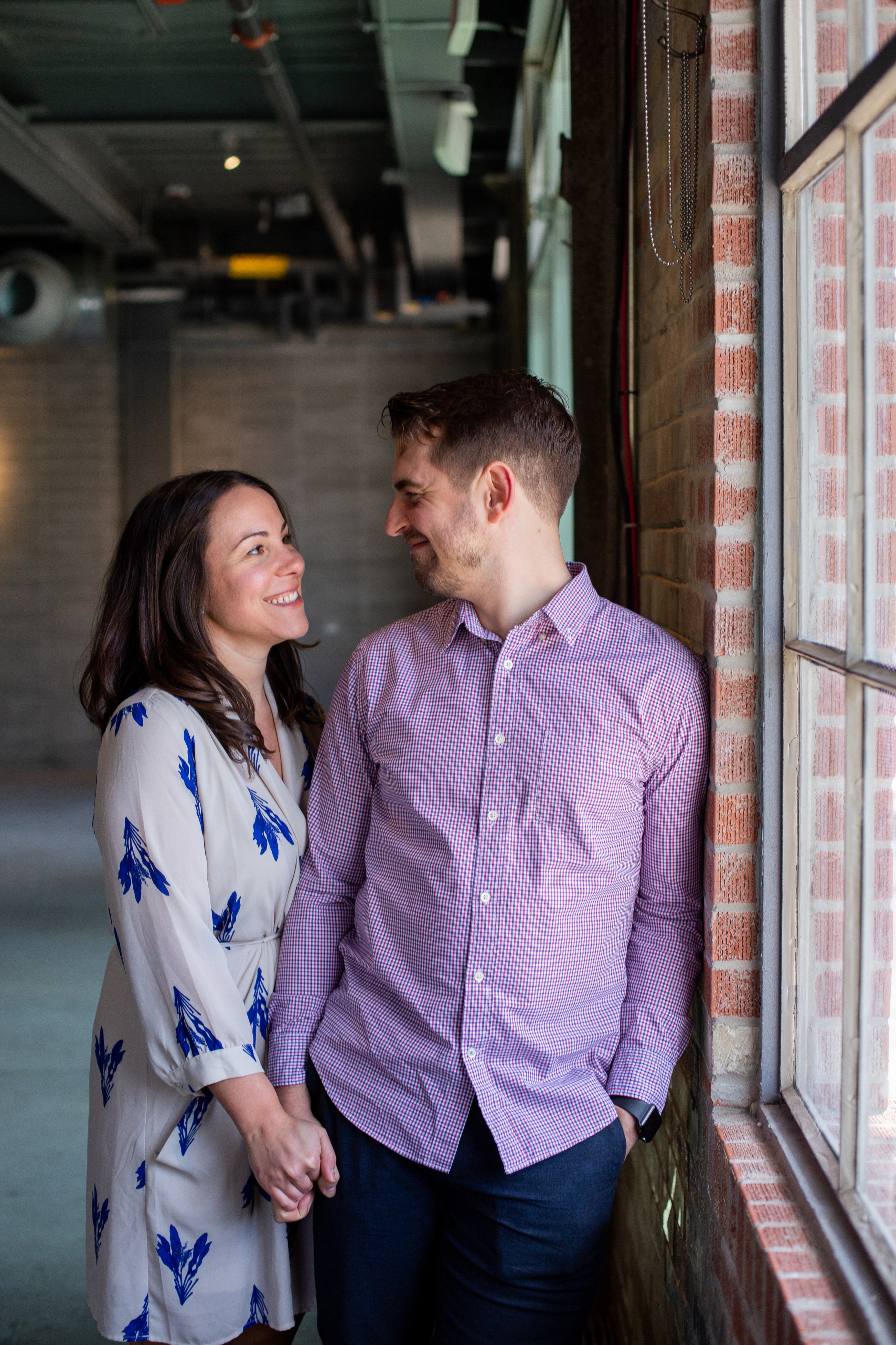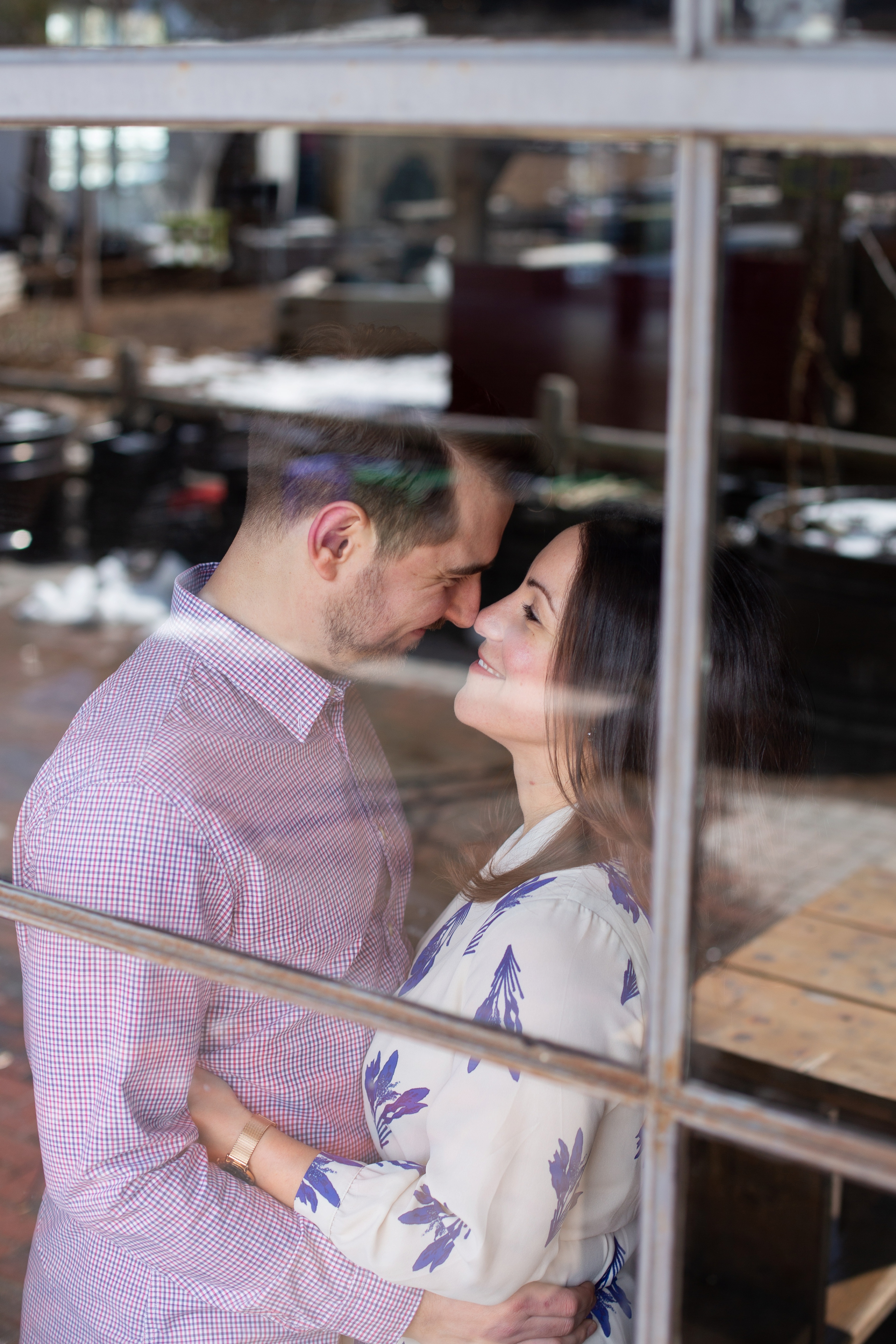 We started their engagement session up on the hilltop where we could get a overview look of the Toronto city scape. This was not too far from where the actual proposal took place. It really made for a great backdrop. After that, we headed back down to Evergreen Brick Works where we roamed the empty market bays. As previously mentioned, there were endless amounts of textures to work with. I think my favourite backdrop was when we went indoors and shot by the window. The natural light really made for some great portraits and dimension. We finished out session back out in the forum of the market. With some snuggles, giggles and casual hand holding, Kate and Jesse’s Evergreen Brick Works engagement session came to an end.