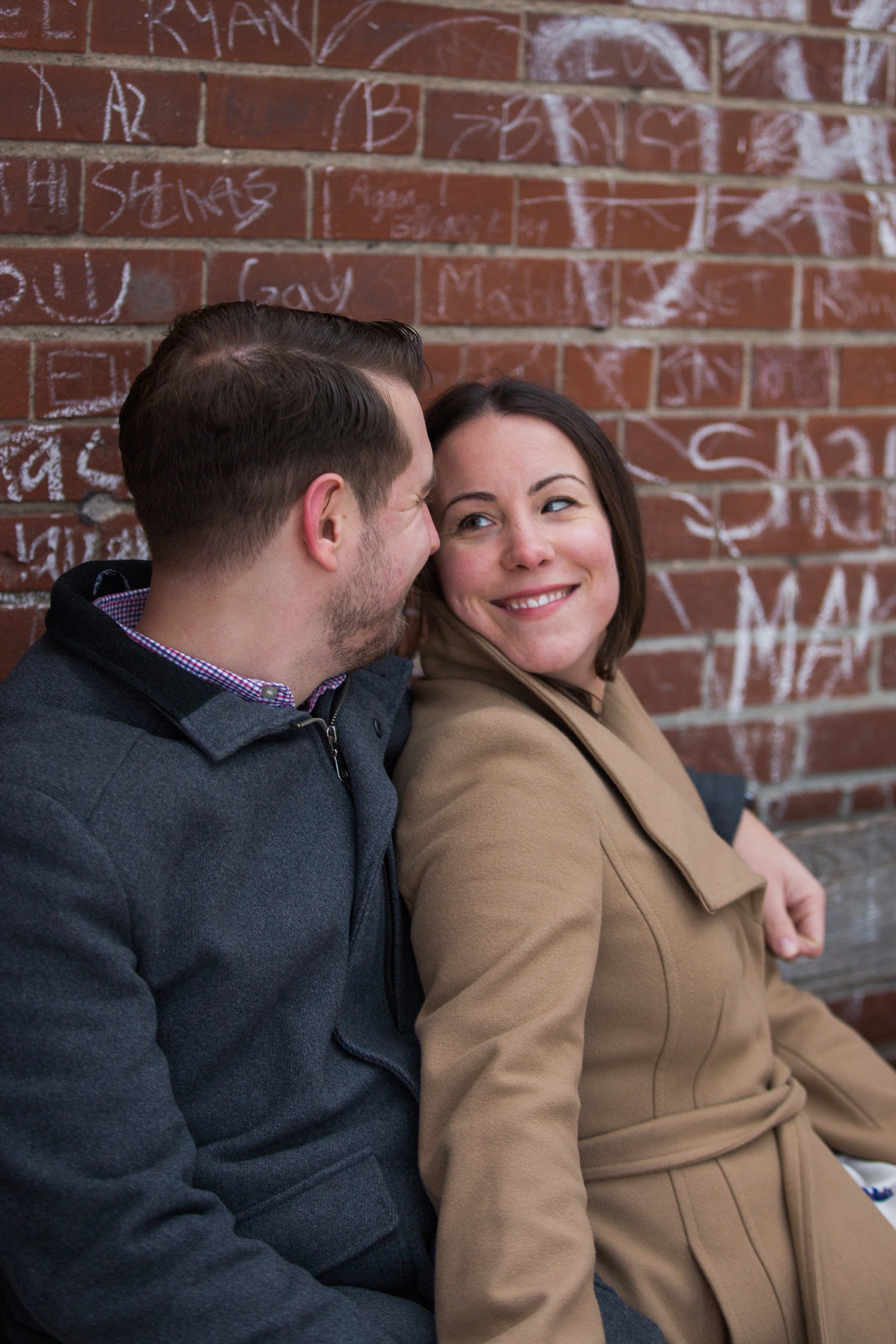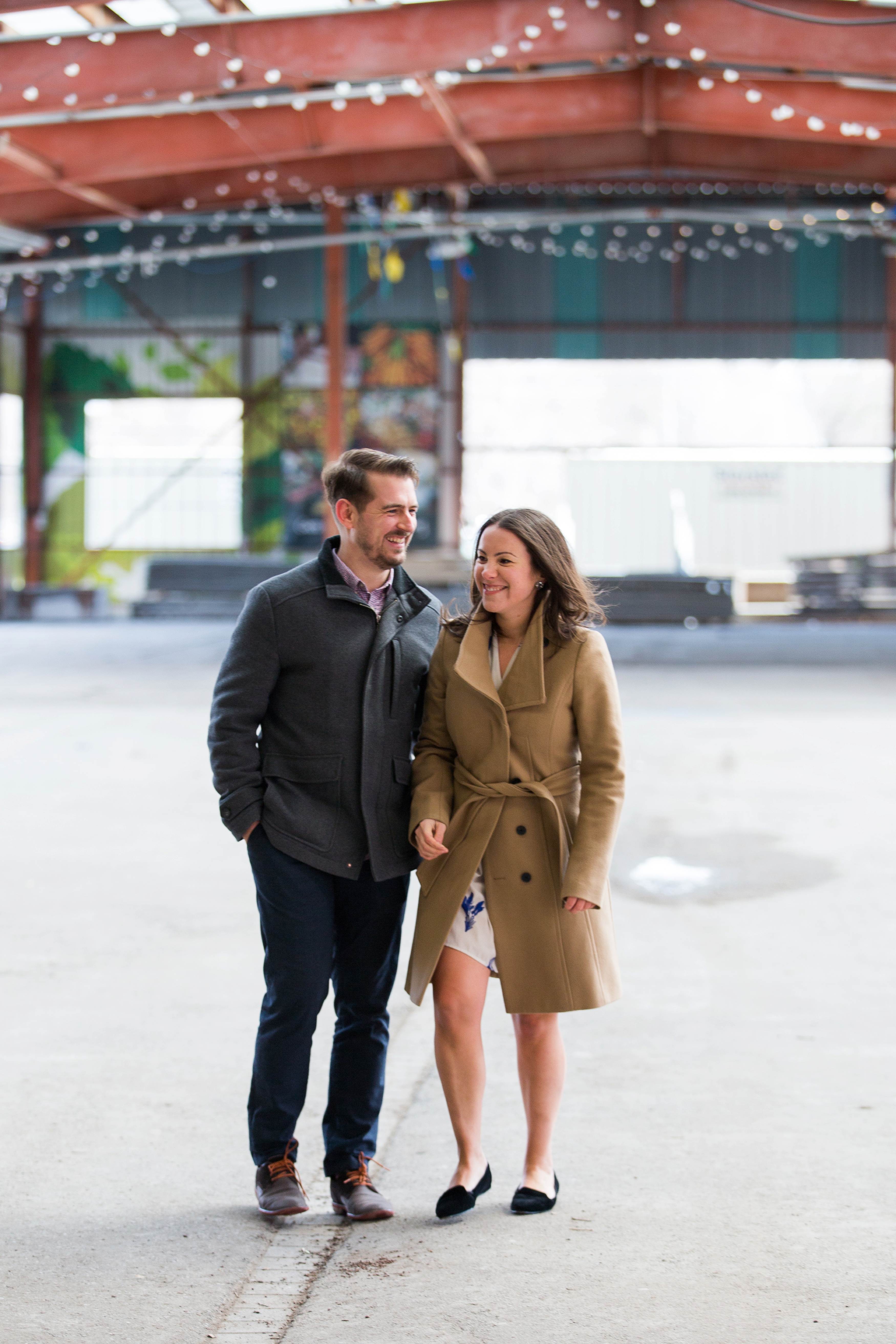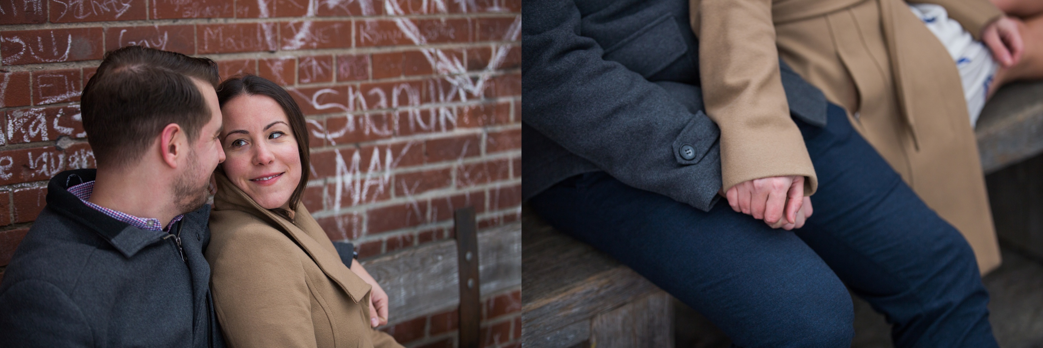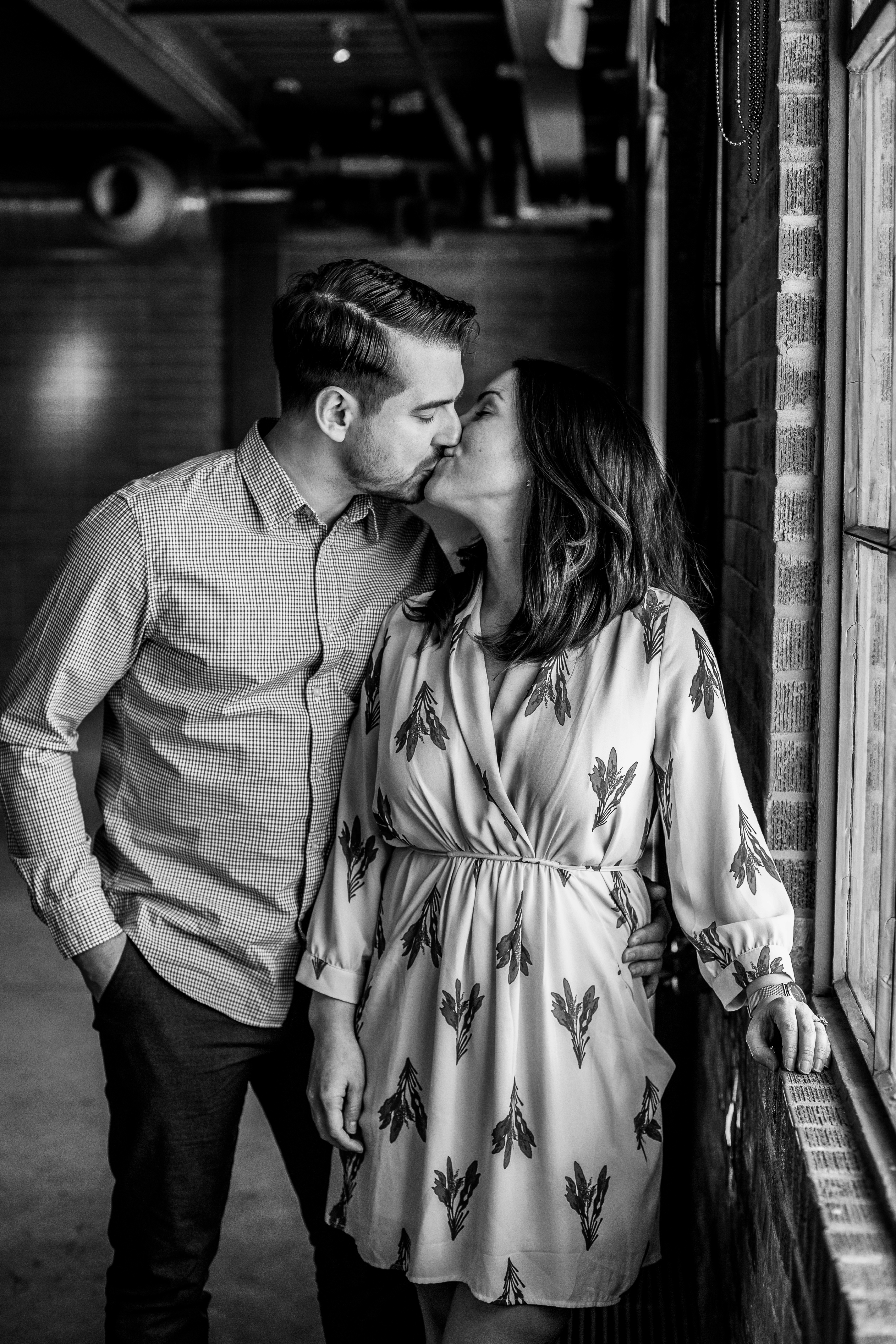 We started their engagement session up on the hilltop where we could get a overview look of the Toronto city scape. This was not too far from where the actual proposal took place. It really made for a great backdrop. After that, we headed back down to Evergreen Brick Works where we roamed the empty market bays. As previously mentioned, there were endless amounts of textures to work with. I think my favourite backdrop was when we went indoors and shot by the window. The natural light really made for some great portraits and dimension. We finished out session back out in the forum of the market. With some snuggles, giggles and casual hand holding, Kate and Jesse’s Evergreen Brick Works engagement session came to an end.