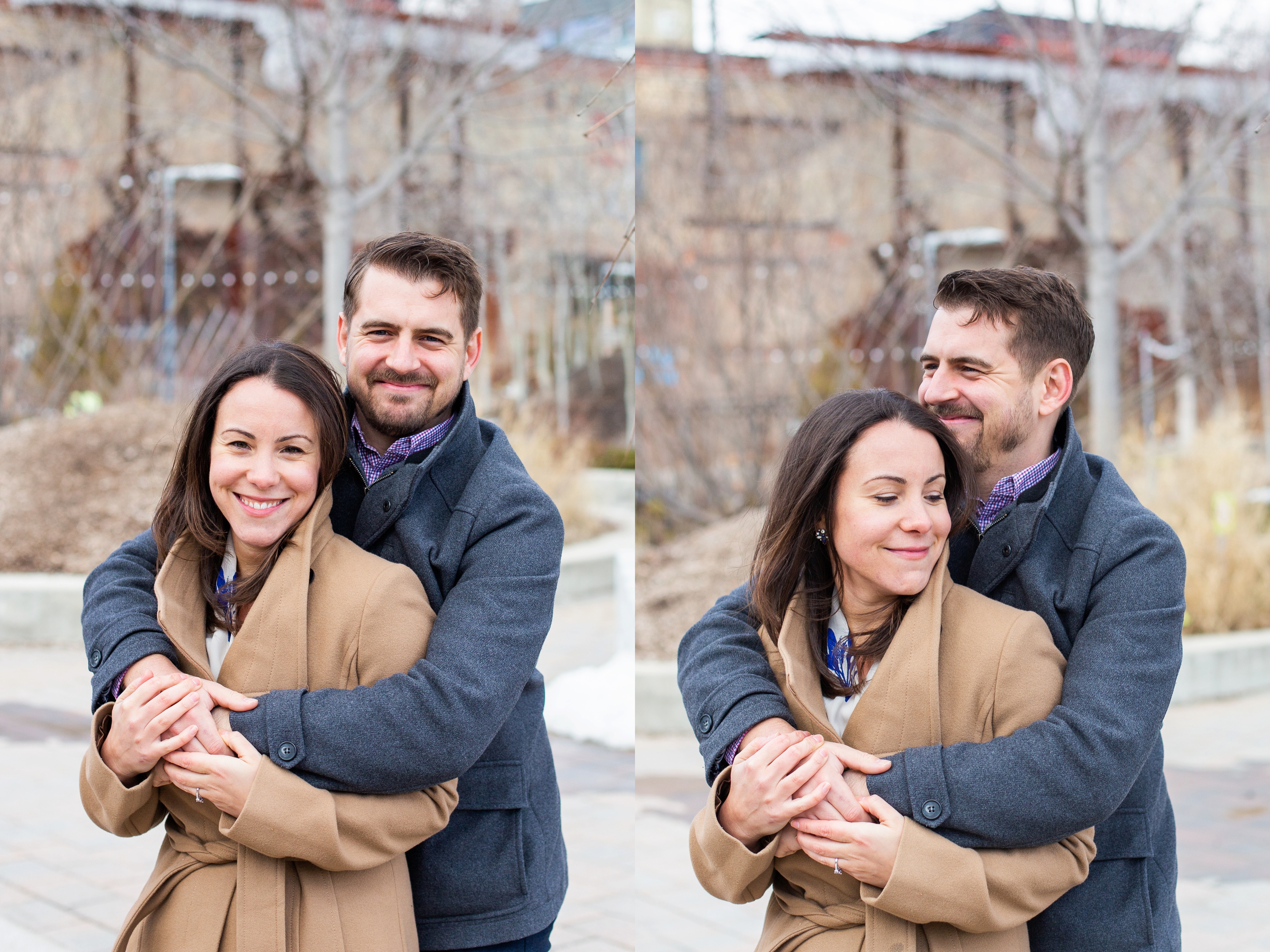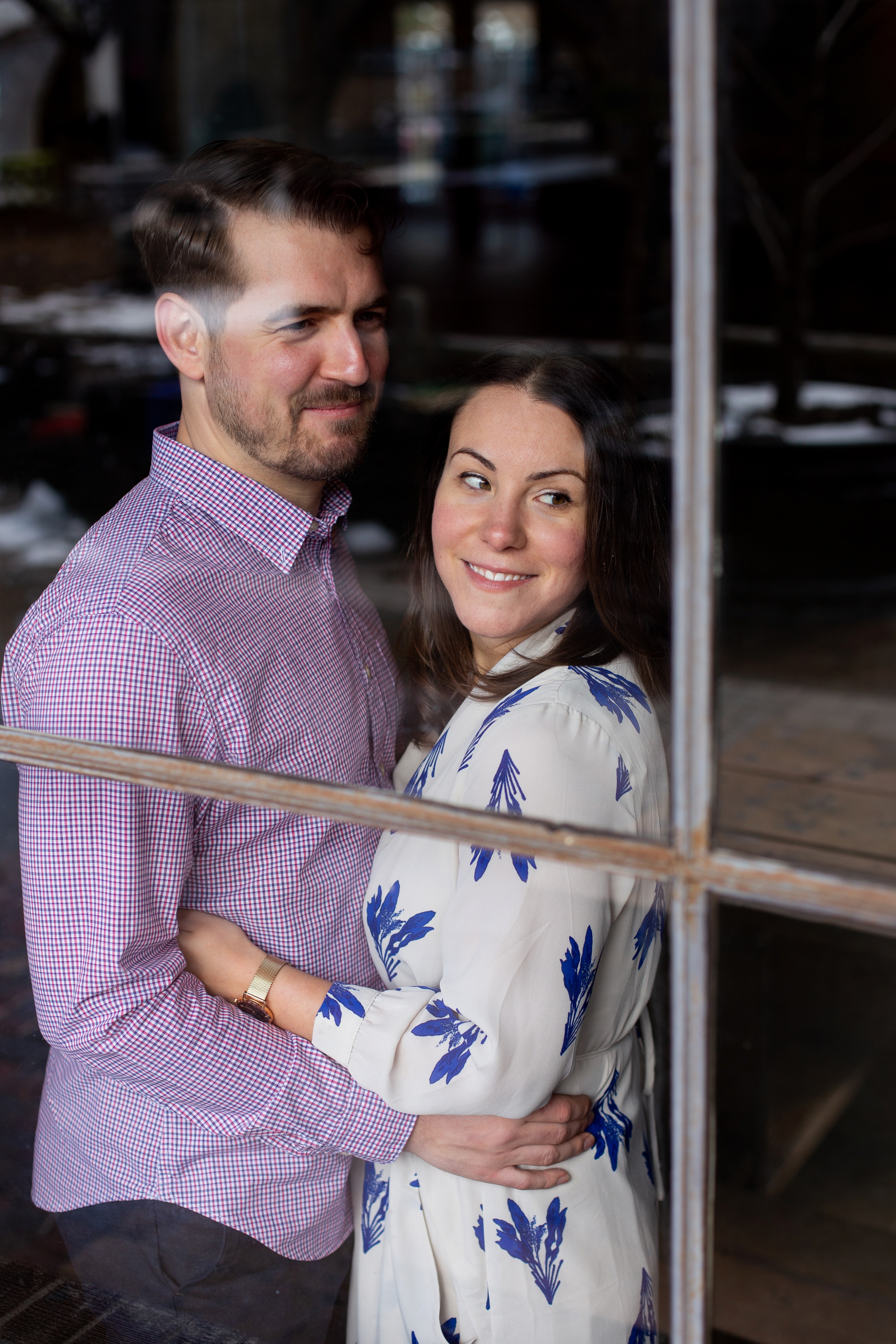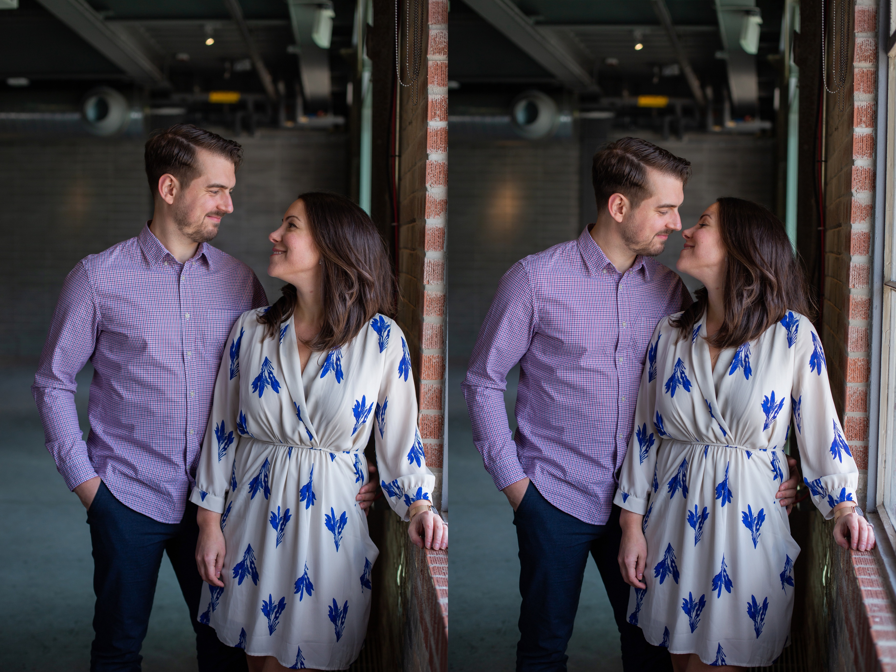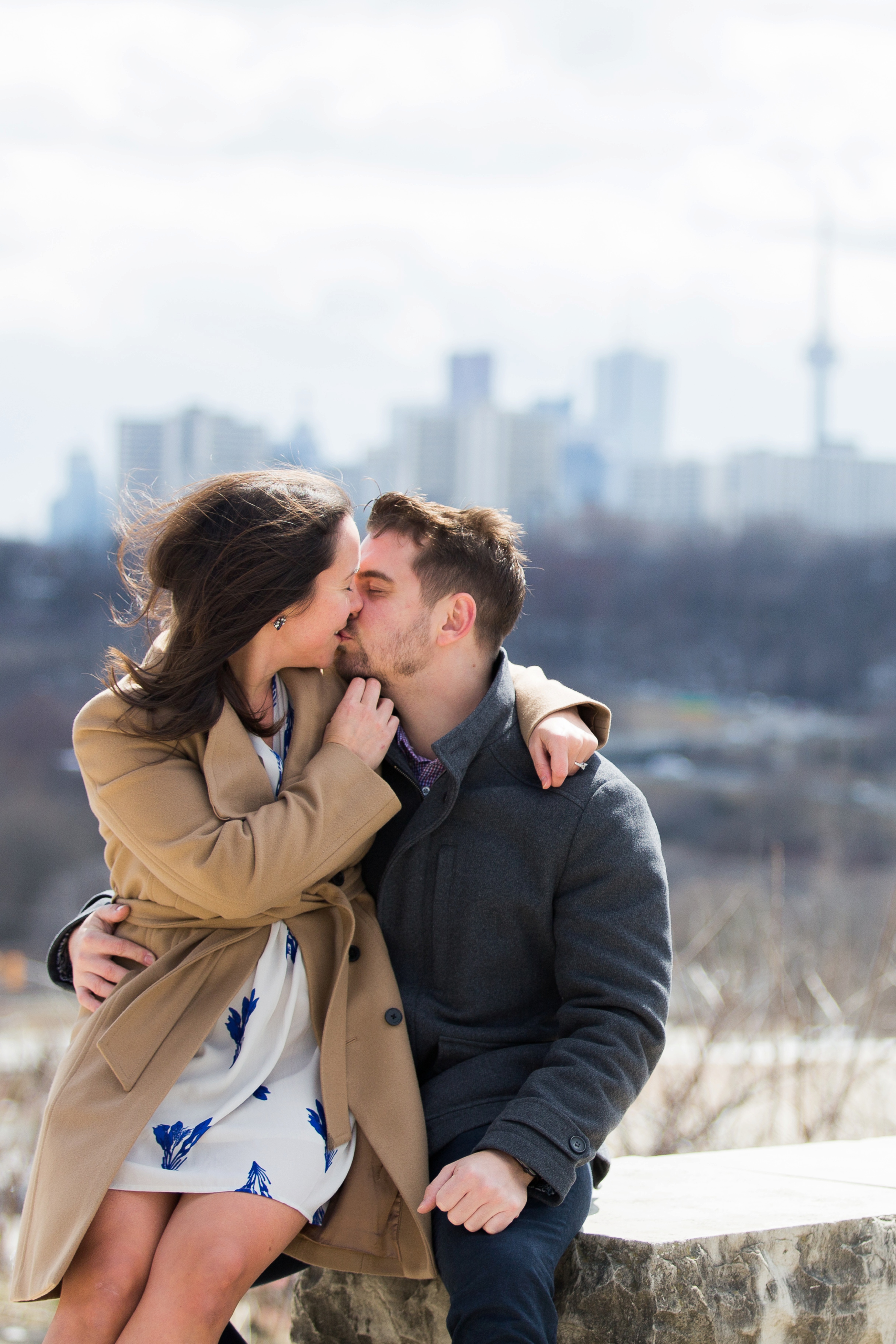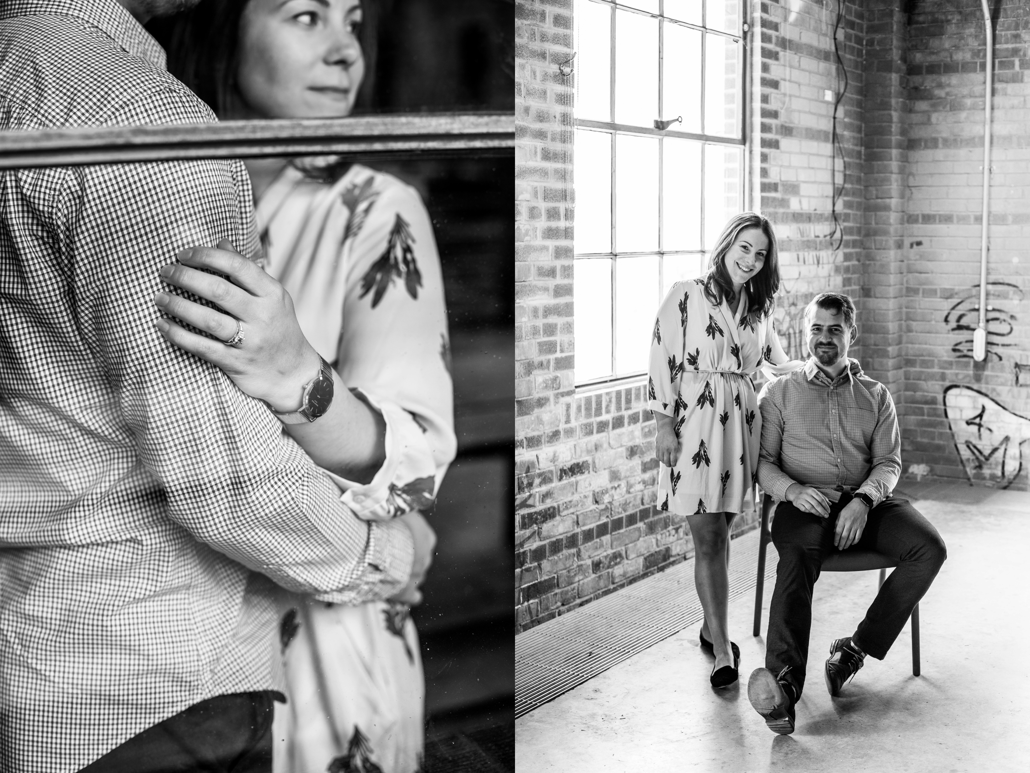 We started their engagement session up on the hilltop where we could get a overview look of the Toronto city scape. This was not too far from where the actual proposal took place. It really made for a great backdrop. After that, we headed back down to Evergreen Brick Works where we roamed the empty market bays. As previously mentioned, there were endless amounts of textures to work with. I think my favourite backdrop was when we went indoors and shot by the window. The natural light really made for some great portraits and dimension. We finished out session back out in the forum of the market. With some snuggles, giggles and casual hand holding, Kate and Jesse’s Evergreen Brick Works engagement session came to an end.