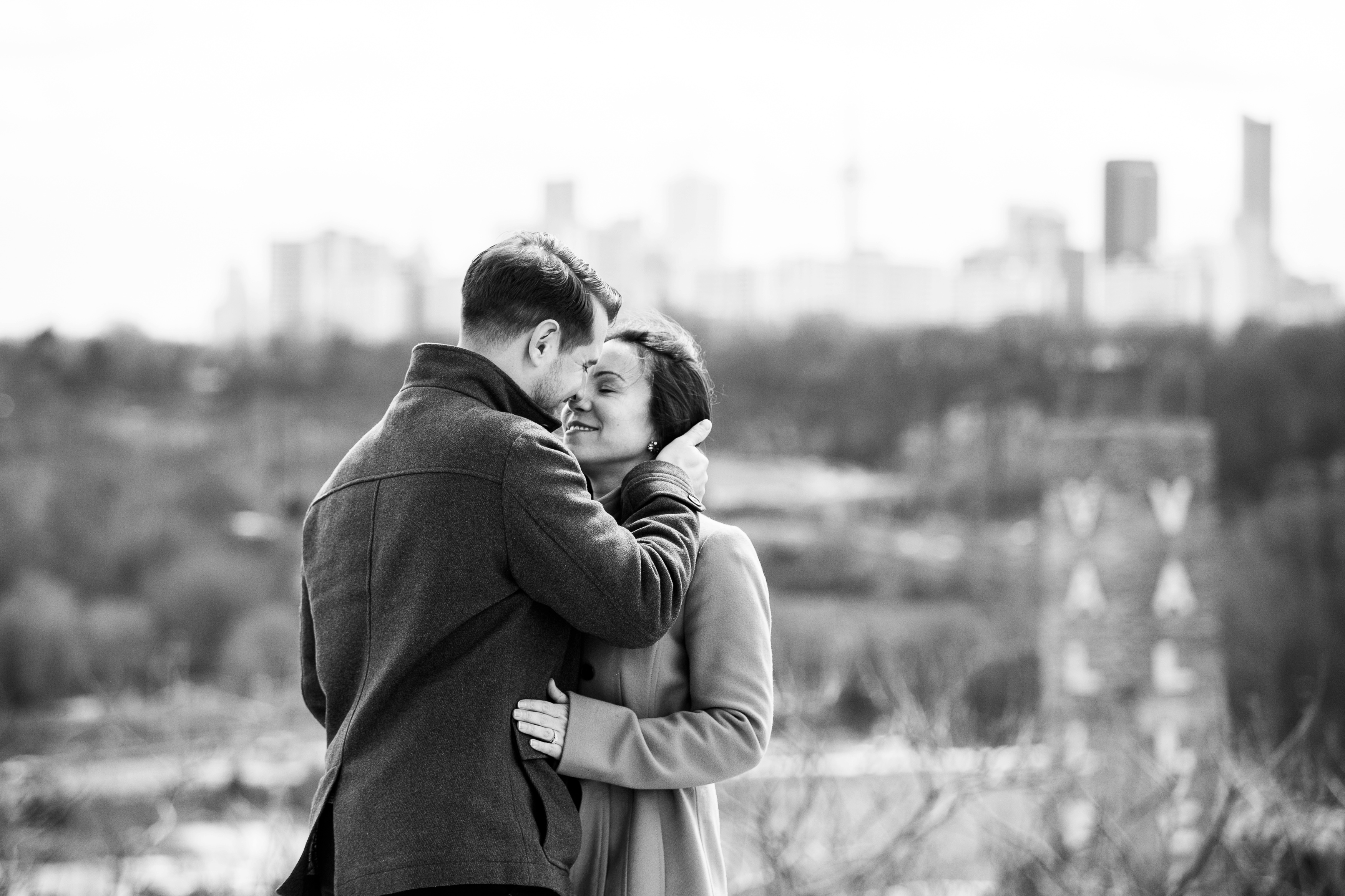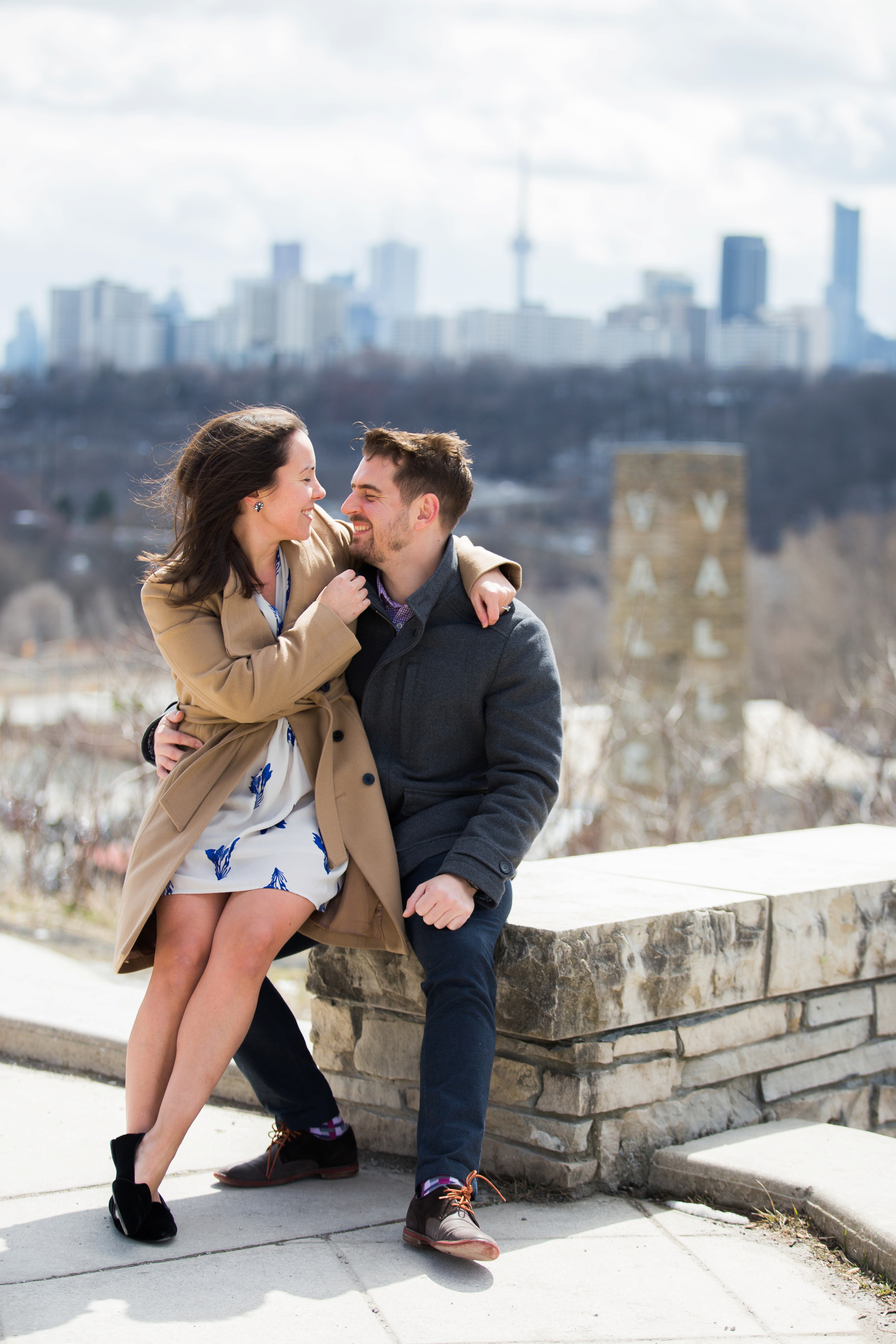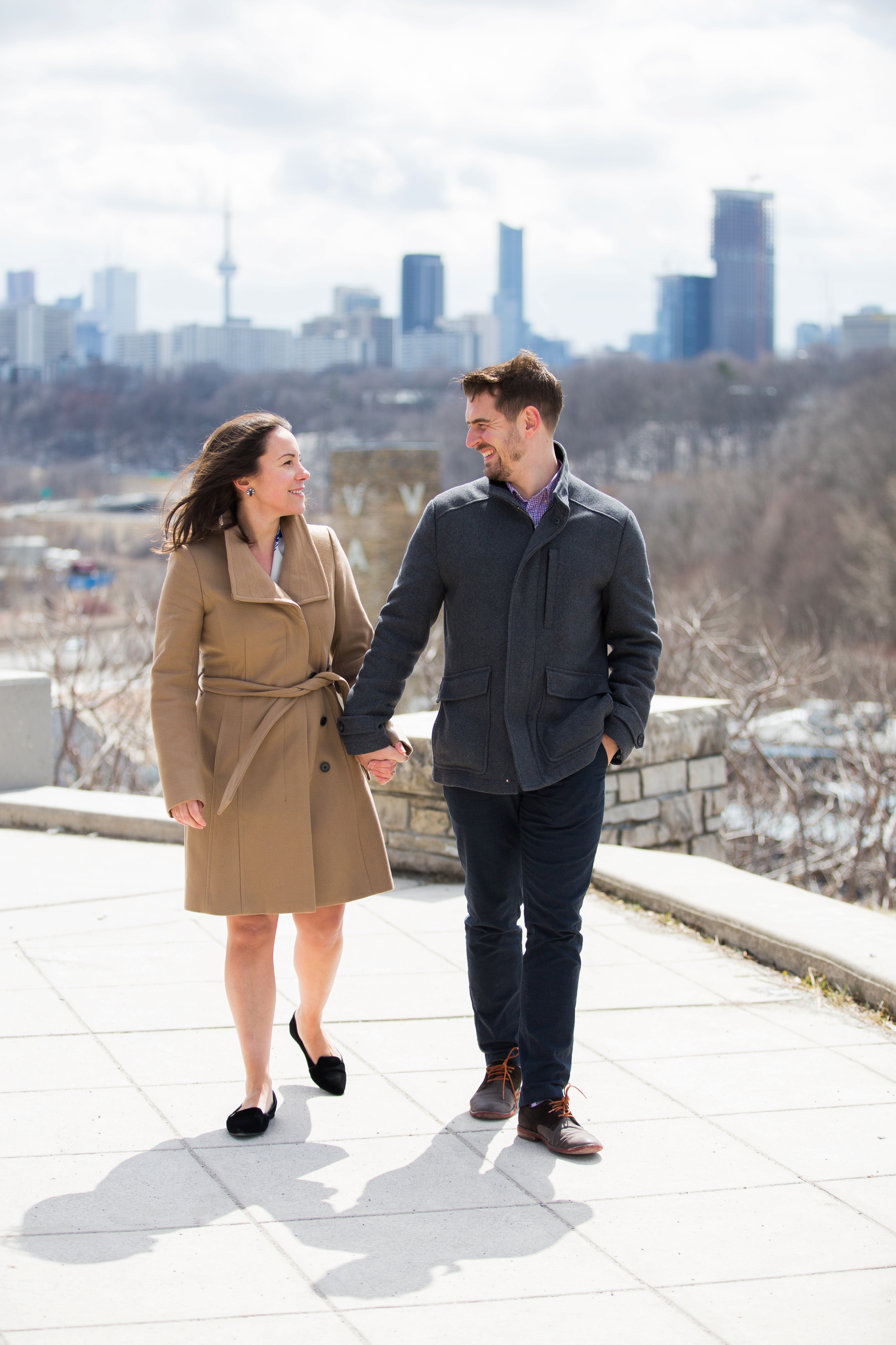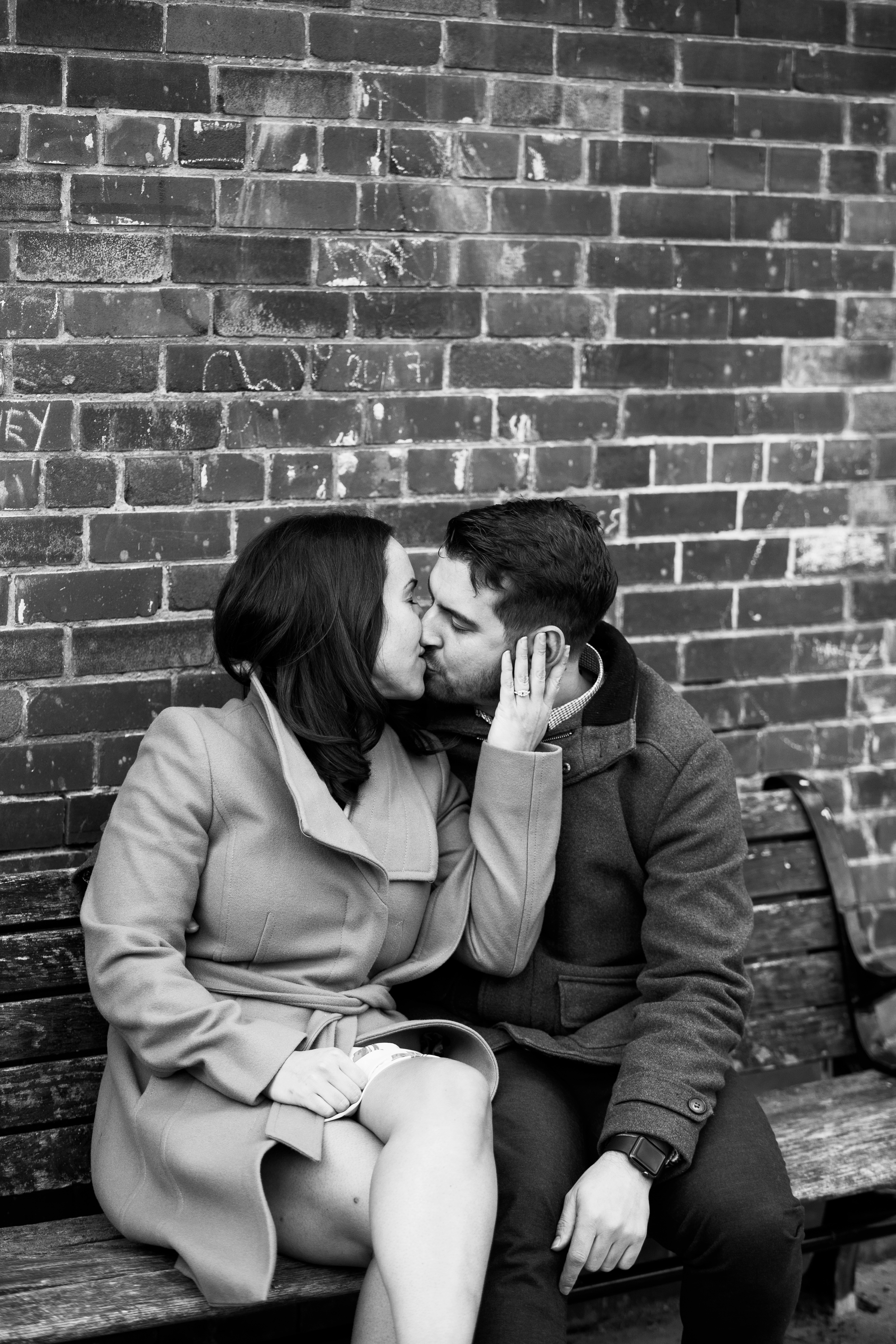 We started their engagement session up on the hilltop where we could get a overview look of the Toronto city scape. This was not too far from where the actual proposal took place. It really made for a great backdrop. After that, we headed back down to Evergreen Brick Works where we roamed the empty market bays. As previously mentioned, there were endless amounts of textures to work with. I think my favourite backdrop was when we went indoors and shot by the window. The natural light really made for some great portraits and dimension. We finished out session back out in the forum of the market. With some snuggles, giggles and casual hand holding, Kate and Jesse’s Evergreen Brick Works engagement session came to an end.