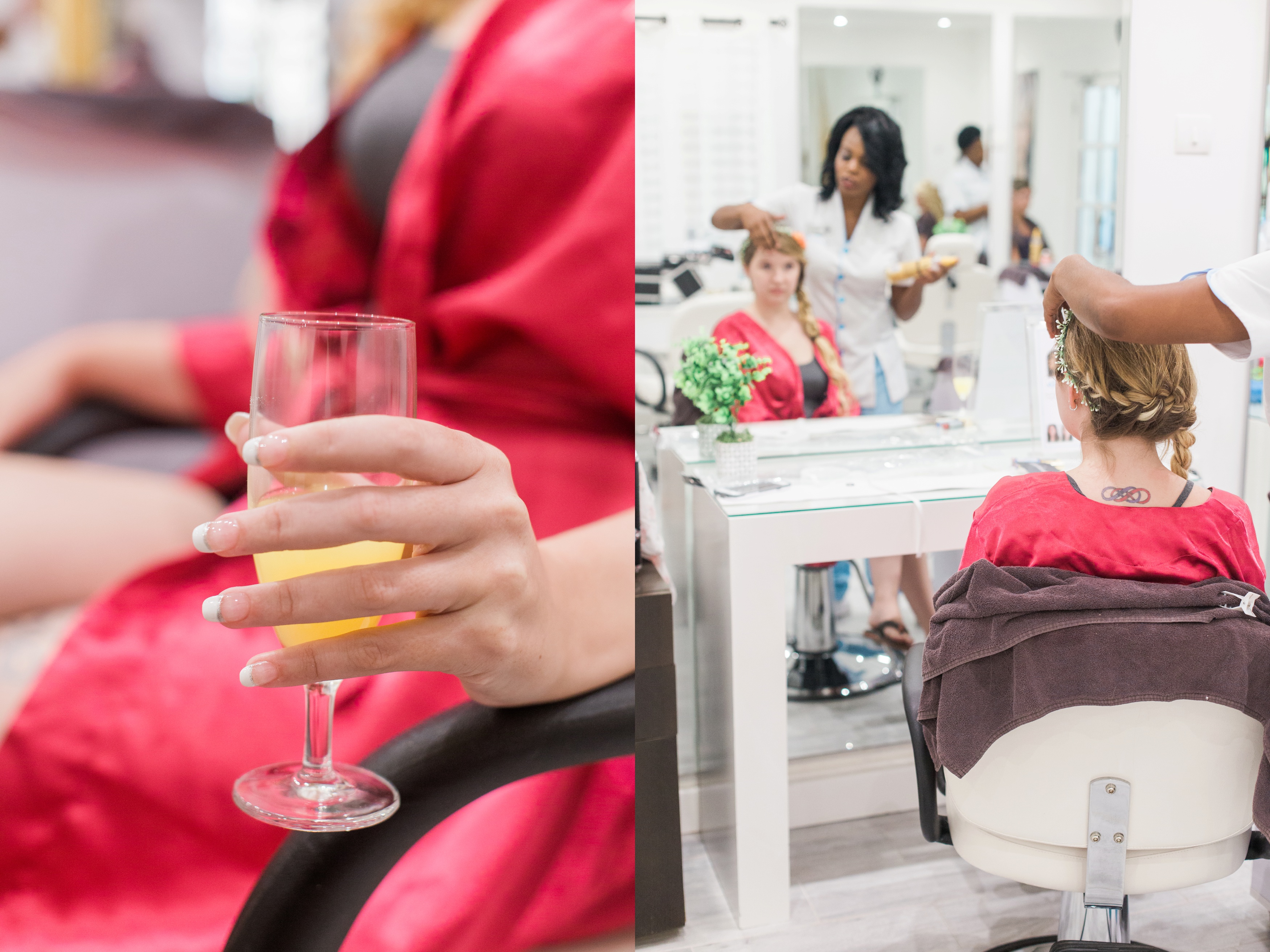 It was a nice slow passed day. I started with getting the groom and his groomsman. Kaitlin & Corey’s fathers were also there to join in the festivities. Everyone was so relaxed and full of smiles. From there, I went to Kaitlin’s suite to capture all her bridal details before any of the ladies showed up. At this time, Kaitlin was enjoying the spa. Primping her nails, hair and makeup. I will be the first to admit that I was completely smitten with Kaitlin’s gown choice. This dress fit her like it was designed just for her. With an added touch of earrings, necklace and her moms brooch on her bouquet, she was ceremony ready.