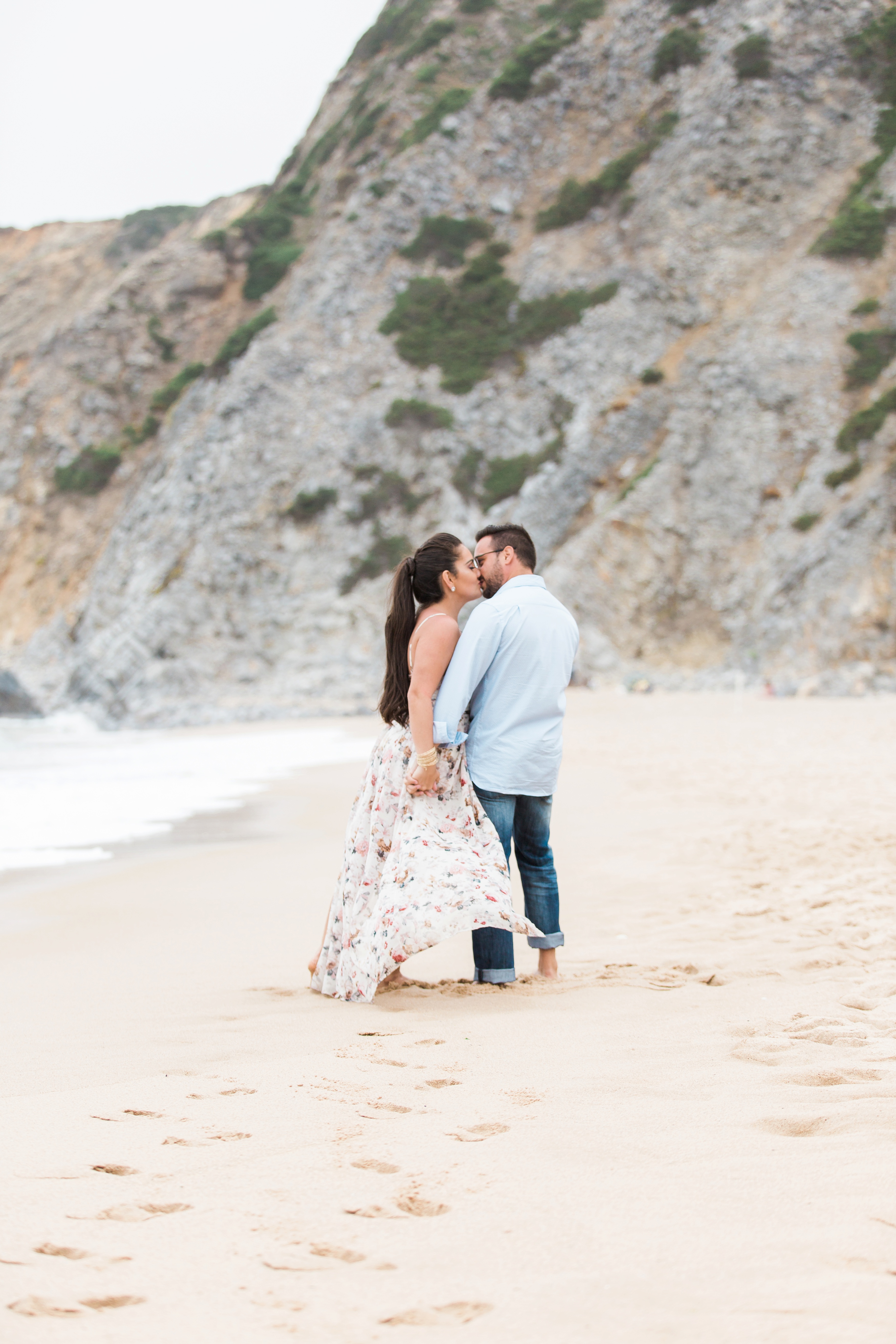 From the palace we enjoyed a scenic drive to a beautiful ocean view lookout point that I still can’t believe I actually visited. I felt like I was looking at a postcard. This view alone was worth the trip to Lisbon. After experiencing the lookout point we took a little drive back through the narrow streets of Lisbon to a quiet beach. This is where we finished our portrait session. The water was ice cold! I have no idea how people were swimming in it. The cliffs were so neat to see. I have never seen a more beautiful beach. Other than in the caribbean of course.