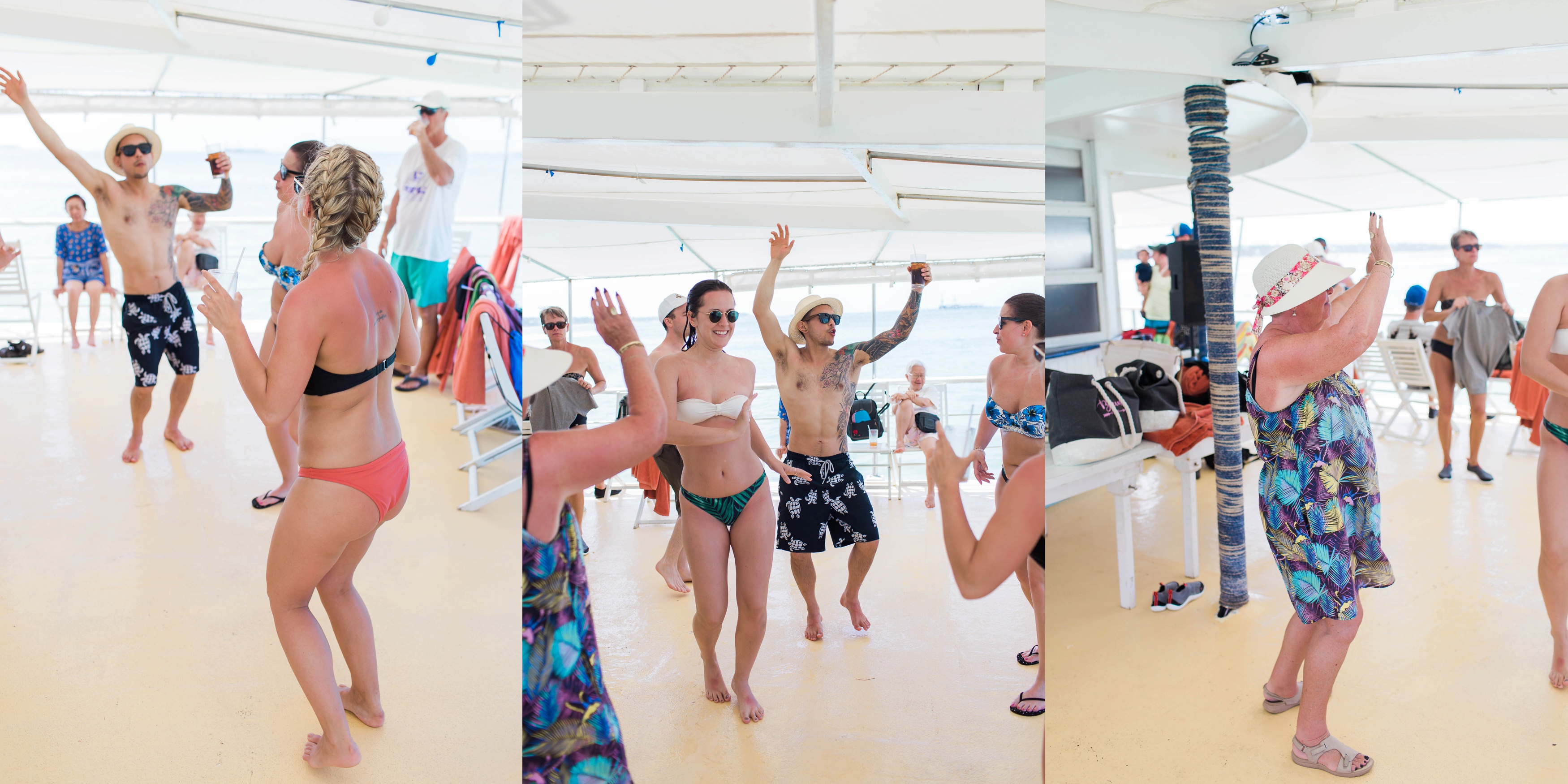 What can I say about this Now Larimar Punta Cana wedding? How about, it was epic. Our week began with a super fun group catamaran trip thanks to Renny Travel. Kate & Raf arranged this as a thank you to everyone for making the trip down to Now Larimar for their wedding. What fun we had on this boat. At one point, Kate was even driving the boat. It was a fun three hours, filled with sun, booze and swimming. Did I mention dancing? We had a lot of fun doing that as well. The weather that day could not have been any more perfect. Needless to say, it was the perfect start to this wedding week in Punta Cana.